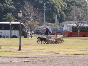 The rich folks in Recoleta don’t have all the time in the world, so they hire these people to walk their dogs. It’s very common to see one person with 12 dogs. And dogs run wild all over the parks and leave little presents on the sidewalks, because “curbing your pets” isn’t enforced here. Shar has experience with dog-walking and would probably clean up pretty well here (money-wise, I mean).