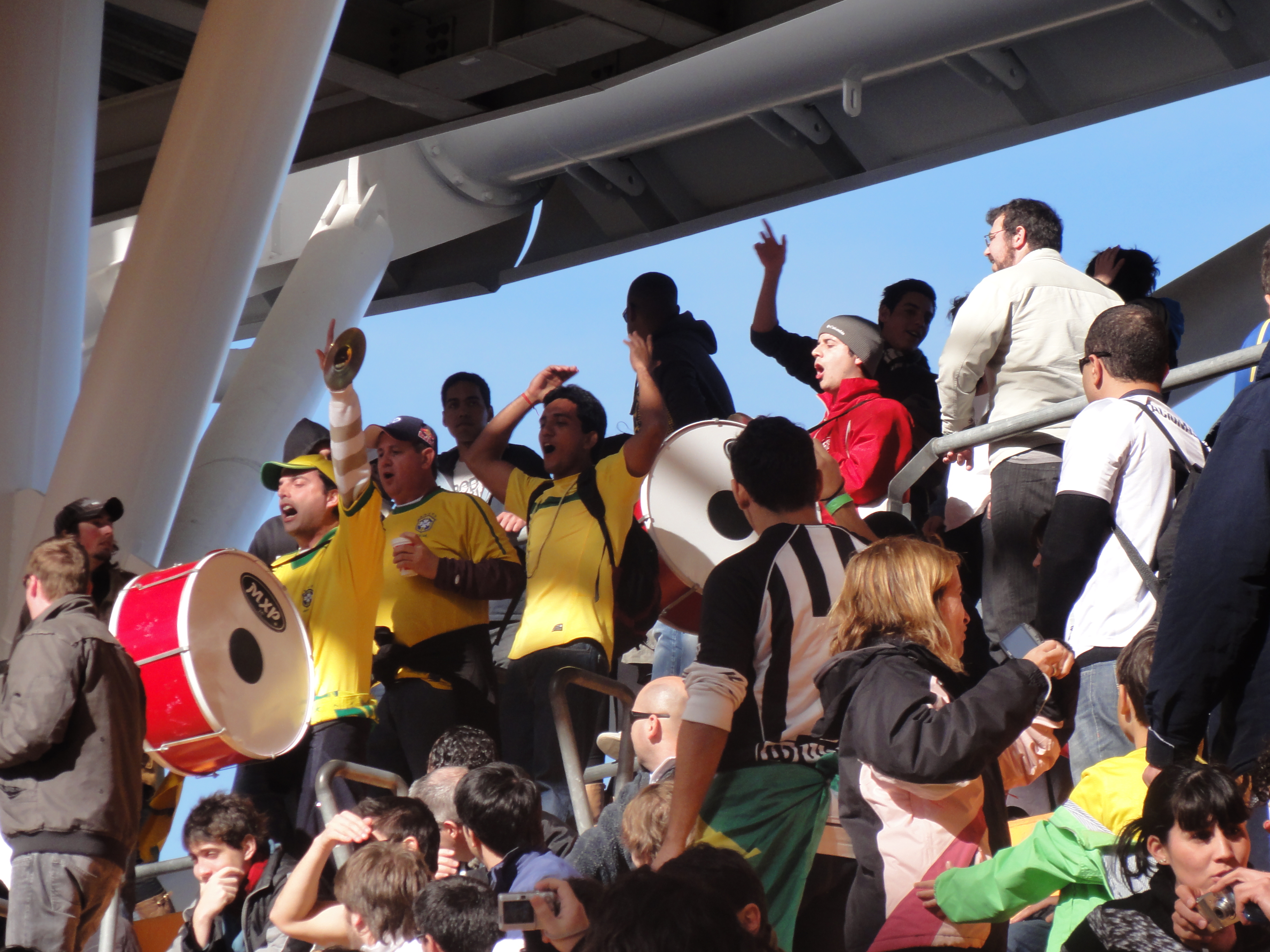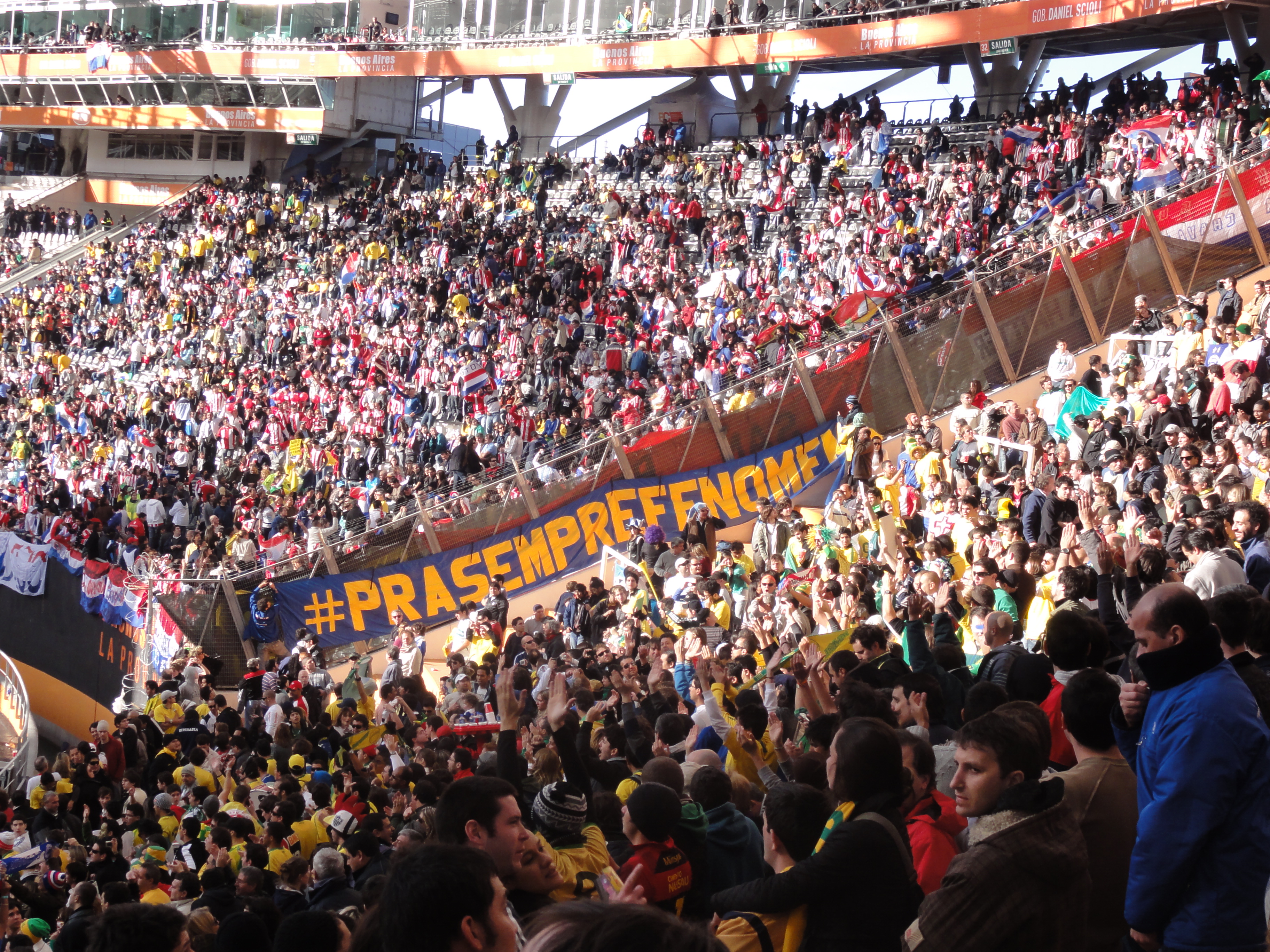 We scored prime seating, smack in the middle of a slew of Brazilian fans and half a stadium full of Paraguay fans.