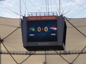 Unlike the previous night’s game (Argentina v. Uruguay, which was a close match right up through the penalty kicks), Brazil v. Paraguay was a lot of running and passing and taking horrible shots that either bounced off the goal post or cleared the net by a few yards, sailing into the crowd.