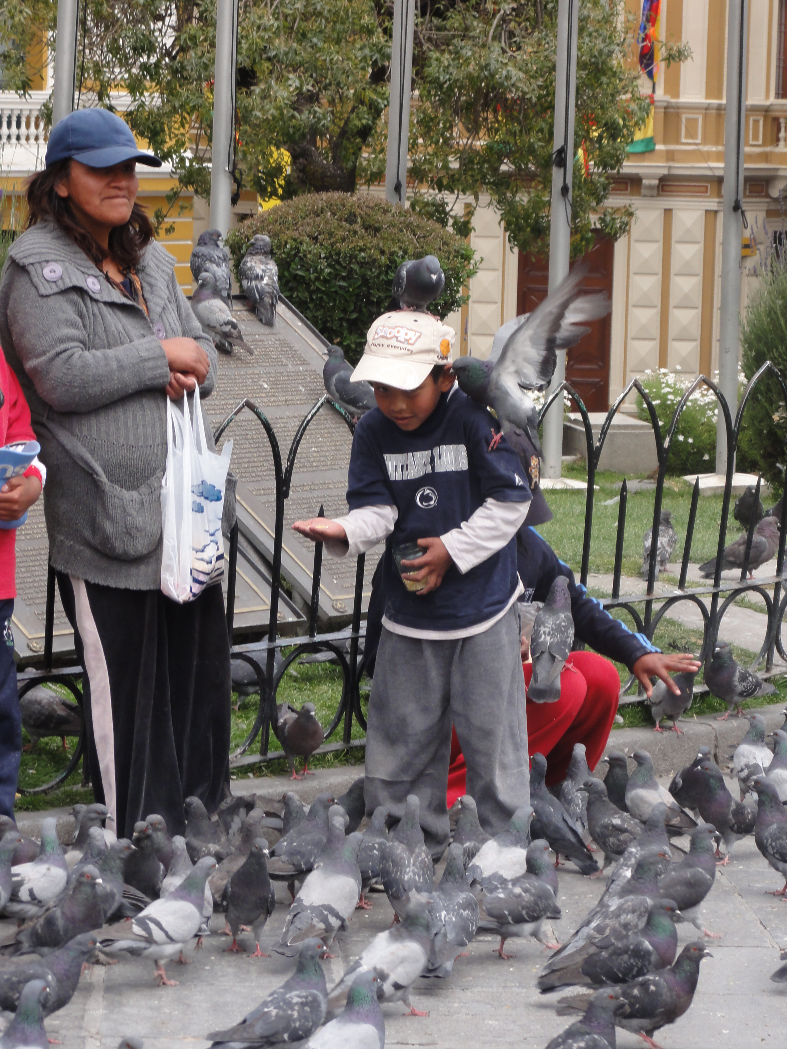 Above, you can also see a brightly colored checkered flag, which is the Quechuan flag. The first few times my friend said this, I thought he was asking to play capture the flag, and I was horribly confused. The next two images come from a collection I call “Children With Pigeons” and will be on display someday in a very special kind of museum.