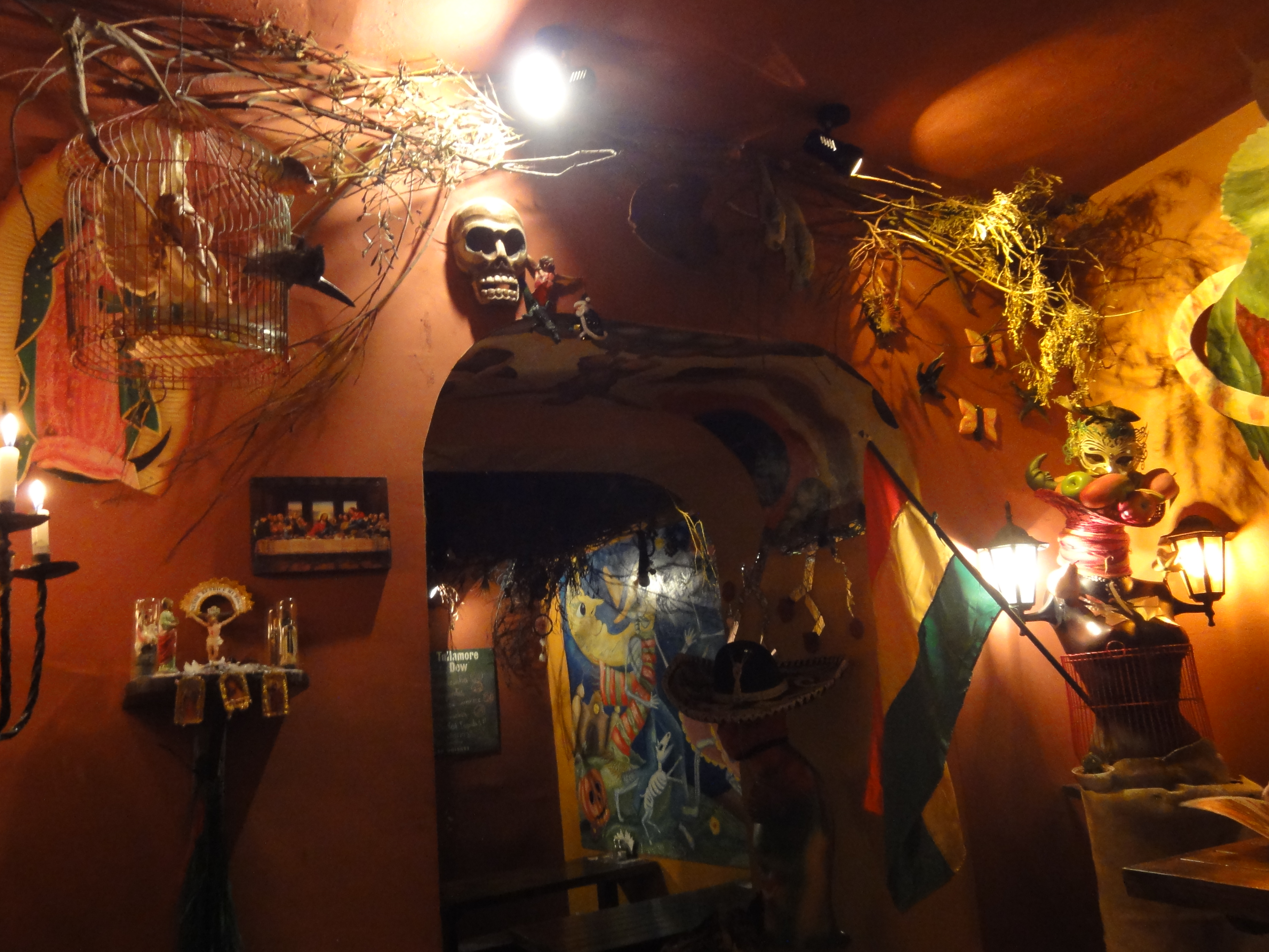 Bummed, I figured Lee and I could check out Cholita wrestling (look it up), but the bus had left already so we hit up this Mexican place called La Cueva in Plaza Murillo and Tarija, where a slew of cool restaurants and bars are located. We got margaritas, nachos, and quesadillas for pretty cheap, and the decor is warm and eccentric.