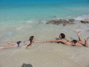 And don’t get me started about the water. It was cool at first, but I jumped right in and swam out until I couldn’t touch the bottom anymore and I could still see my poorly painted toenails through the transparent blue water. I tried to label the type of blue that the Mediterranean is, but it’s unlabel-able. It’s a thousand different blues and even a little bit greenish, turquoise. It was warm and the sand – unless you were brushing your toes against an unsettlingly furry rock – was satin-smooth beneath the tide. I spent most of the morning floating over waves and drifting in the current. The phrase “happy as a clam” is truly applicable here.