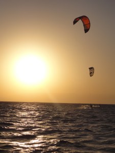 kitesurfers and the sunset at hacienda bay