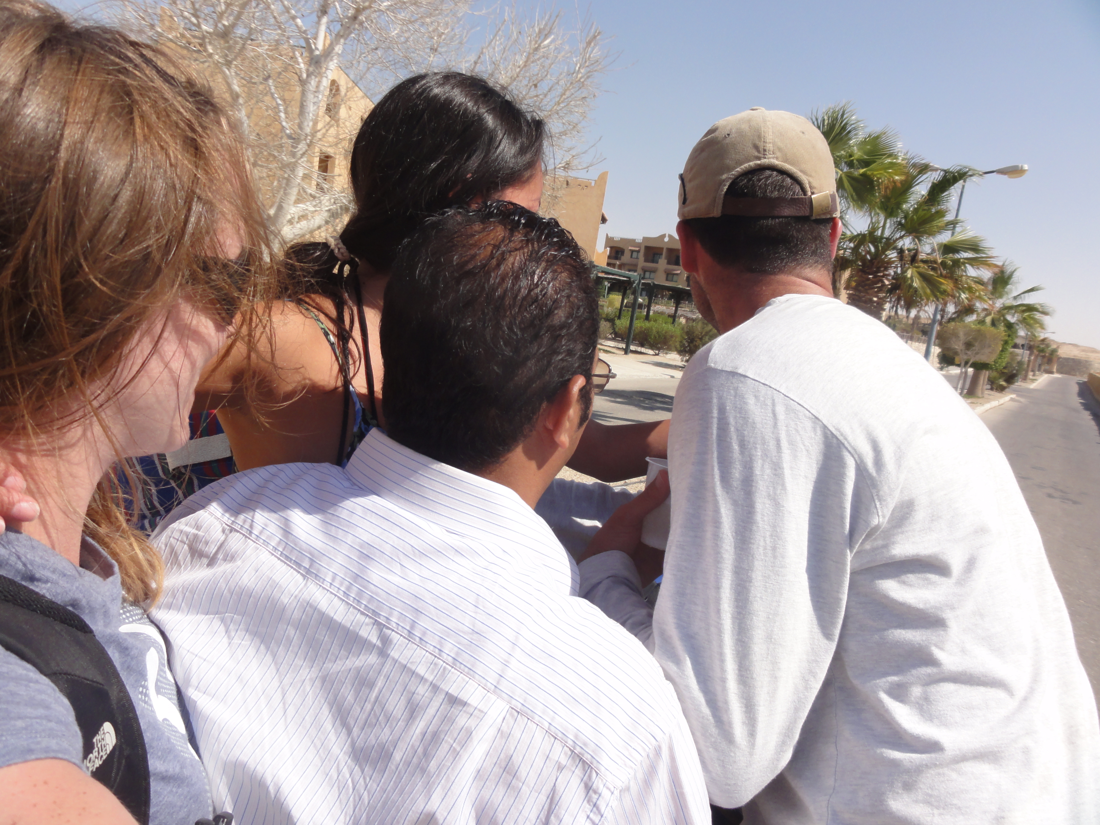 If you aren’t familiar with the Sinai Peninsula and the area by the Suez Canal, you should know that it’s a disputed border area laden with security checkpoints. We were stopped a few times on our way in, but nothing compared to the stop right before entering the tunnel beneath the Suez. Not only did we have to sacrifice our passports, but we had to get out of the car and watch as security personnel overturned the mats and sorted through the glovebox, sniffing Tylenol capsules and fondling the spaces beneath seat cushions.
