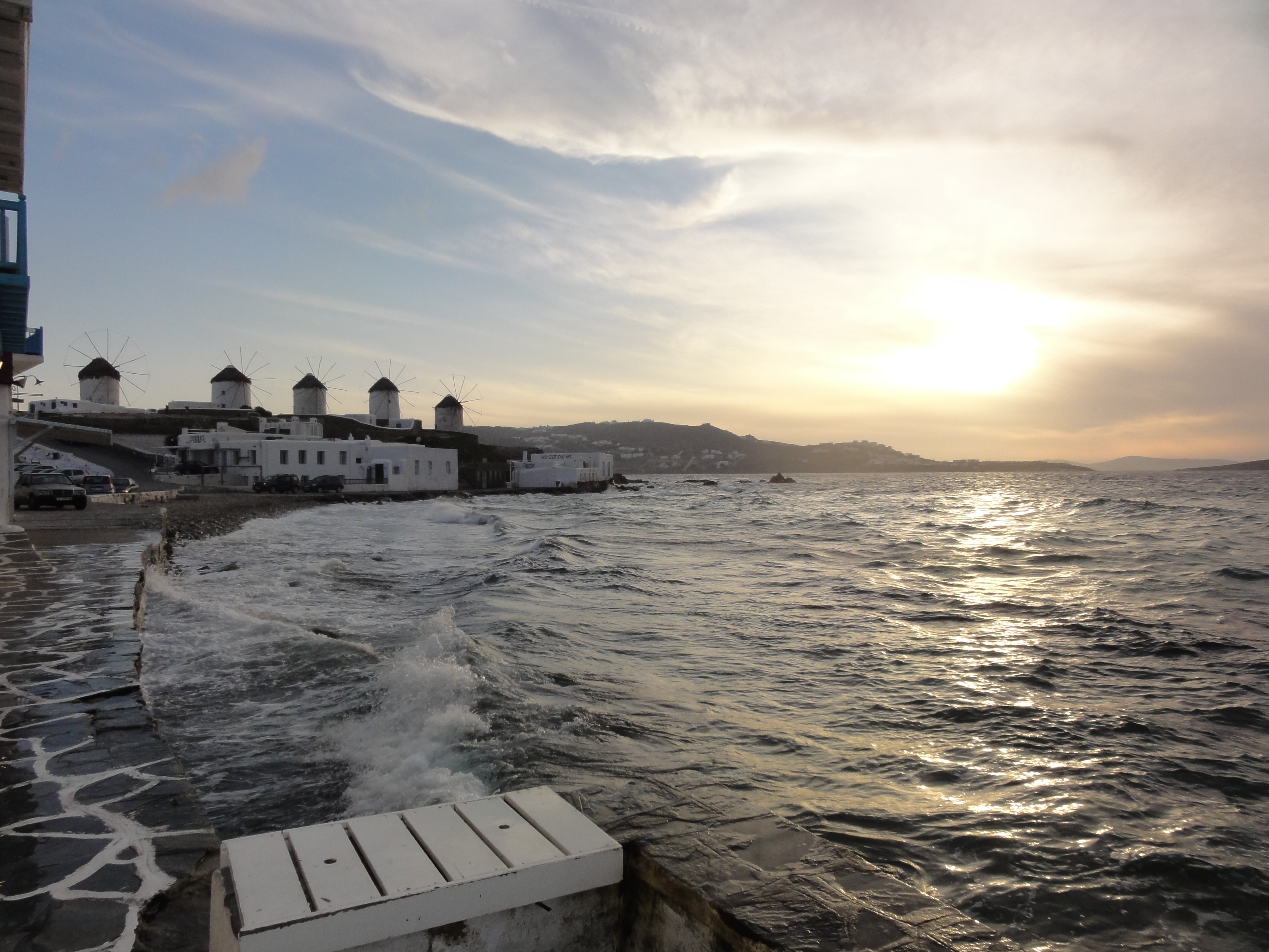 Yesterday afternoon, after a failed attempt at scoring a ferry to take us to Santorini, we lounged at a waterfront bar called Rhapsody to watch the sun set over the windmills. It was chilly, and as we sipped our BBCs, we promised ourselves we’d return in the summer, if not for the heat then for the dignity. Throughout our stay, we’d been asked by everyone from the hotel owner to the owner of a gyro shop why we were here in November. Being in Mykonos in November seemed akin to strapping moose antlers to your head and running through a busy intersection. It was possible, but why would anyone want to do it? Perhaps if we’d donned our Land’s End sweaters and had an ebullient golden retriever in tow, we’d fit in just fine, but instead we spent our time shivering viciously and, through chattering teeth, fielding the question of why we were there.