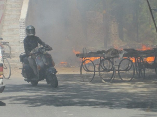 Salim nodded, still looking disappointed. Grateful and sweaty, I guiltily left the Taj behind me as we walked for the gates. We emerged onto the street and the hot air mingled with the pungent odor of burning garbage slammed my nostrils.