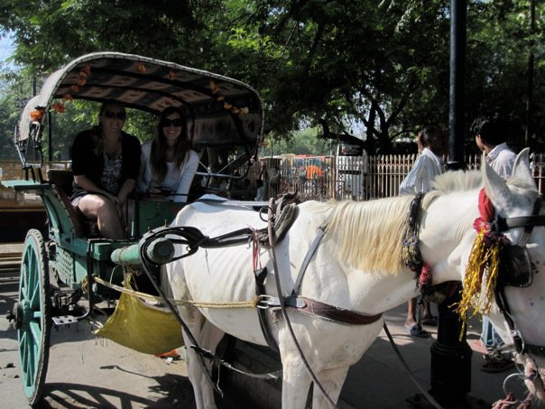 “You have a tonga ride booked, so we will drop you off here, and meet you at the gates of the Taj Mahal,” Salim told us, showing us to our tonga. (A tonga is a horse-drawn cart, and arriving at the Taj via horse-drawn cart sounds far more romantic than it actually is. In reality, it was a five minute ride a few meters up the street in a rickety cart drawn by an emaciated horse.)