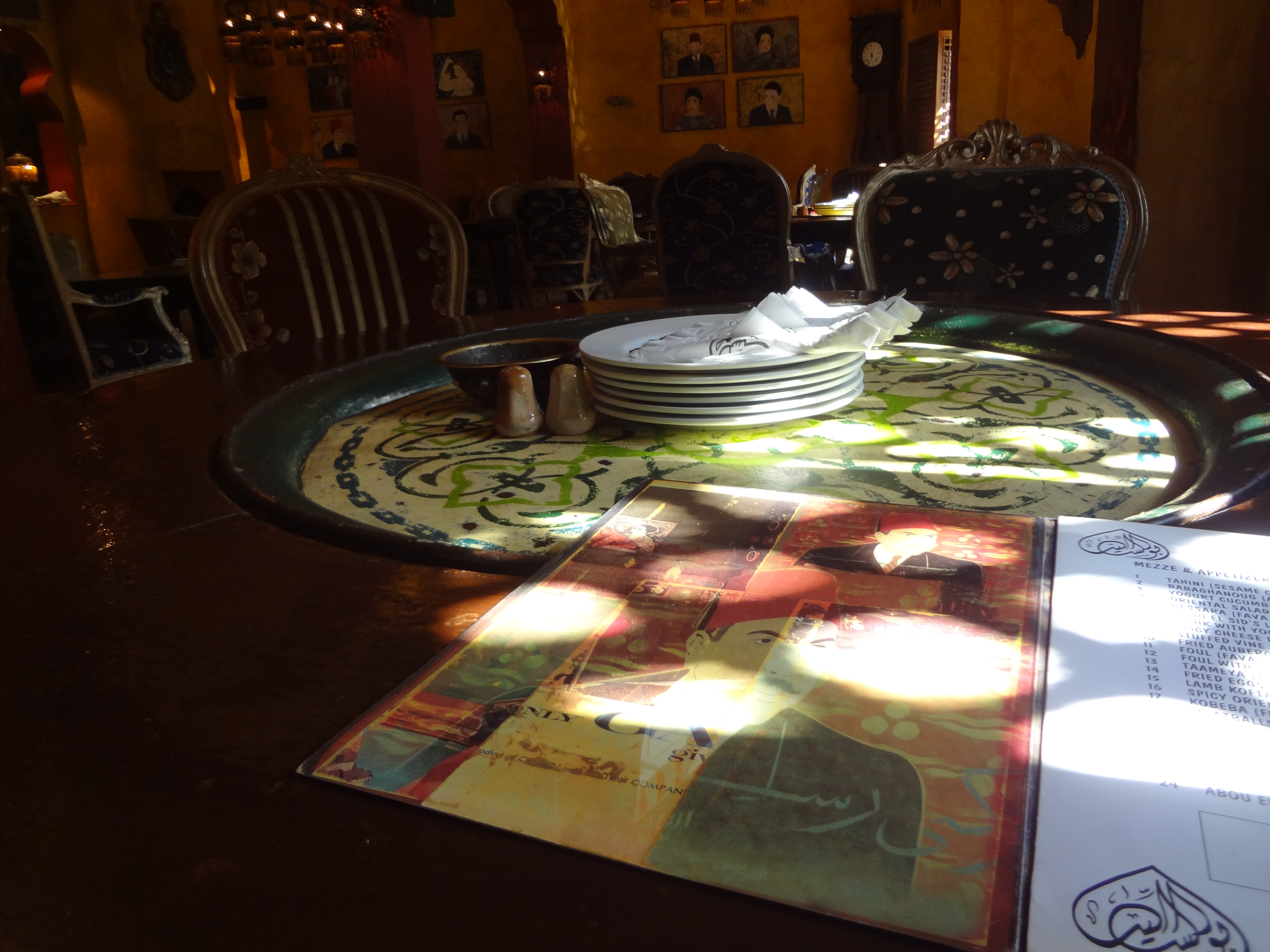 We were all pretty tired by this point, so Shar and I headed off to Abou el Sid, the restaurant where I experienced my first ill-fated run-in with pigeon. I ordered us the whole gamut of Egyptian food, which was far too much, and finally got to try pigeon.