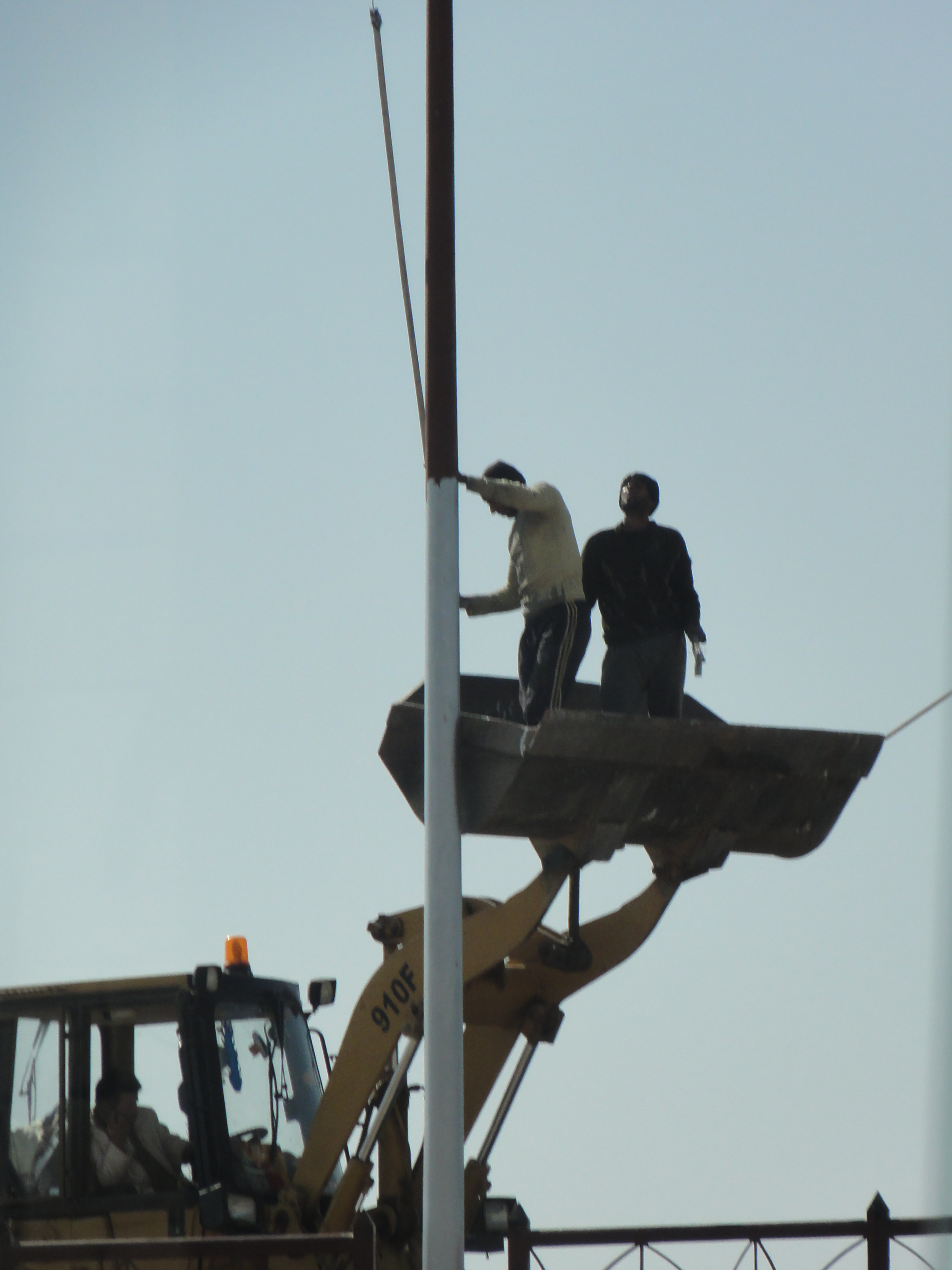 On our way to get our visas processed in Tahrir yesterday we spotted a man on a bulldozer painting a towering lamppost. (What makes this picture a truly TIE moment is not the two men in the bulldozer blade with the paint roller, but the man chatting on his cell phone at the wheel.)