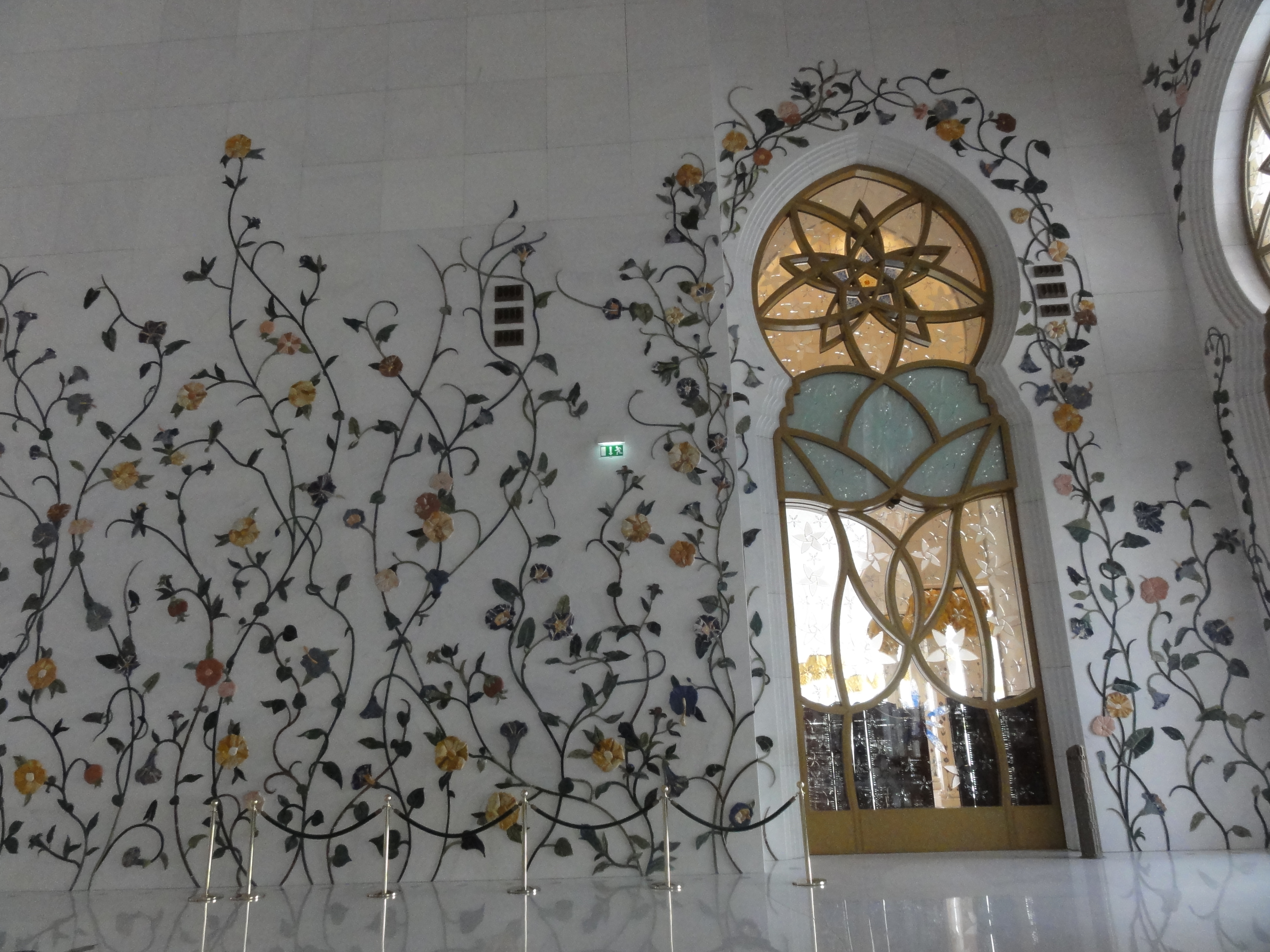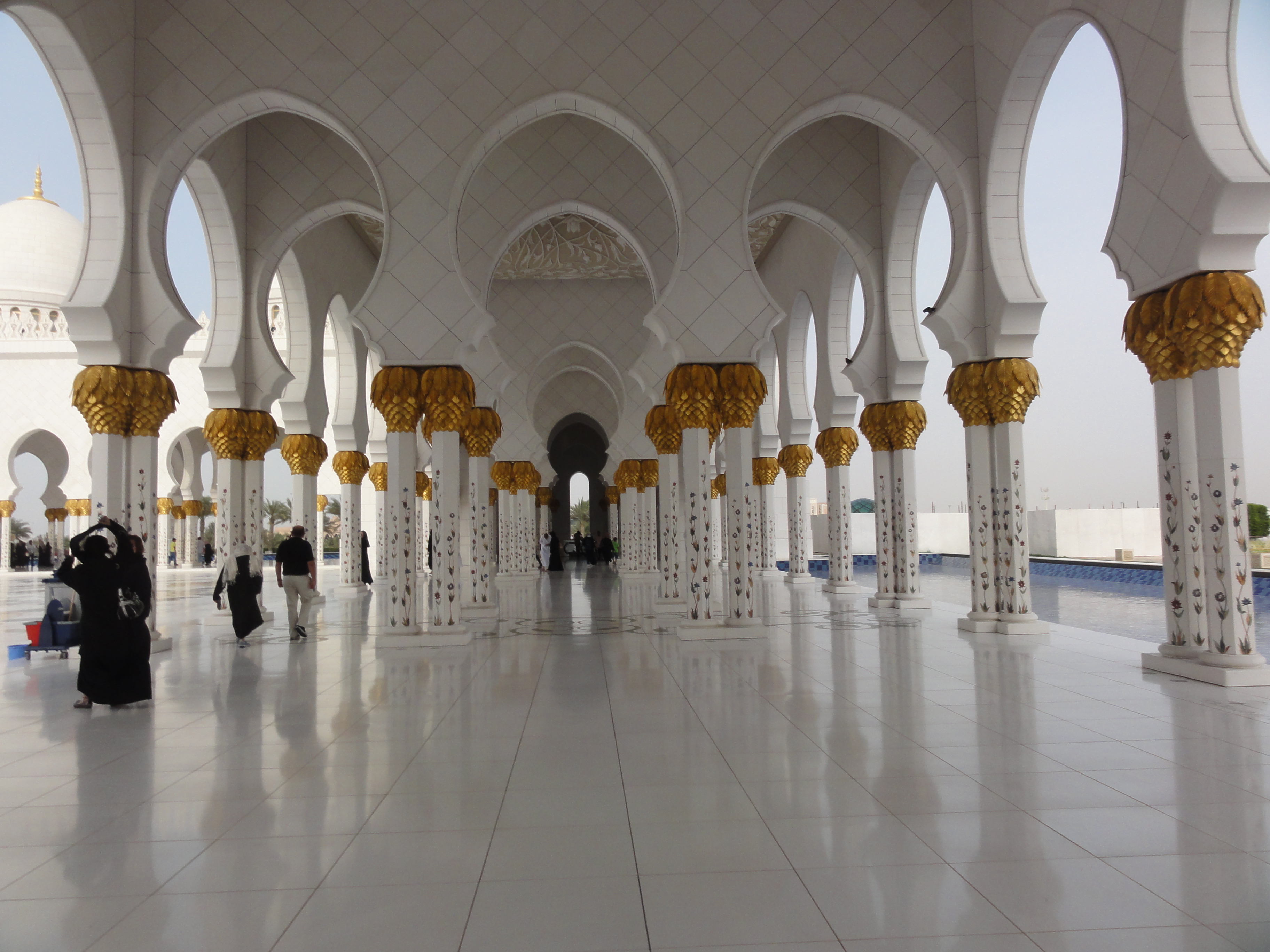 Pristine white pillars, colorful flower blossoms and vines exploding along the white tiles, columns laced with golden vine filigree. Pools and fountains. Perfectly domed ceilings. If the exterior was breathtaking, then the interior was heartstopping.