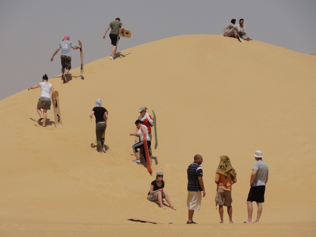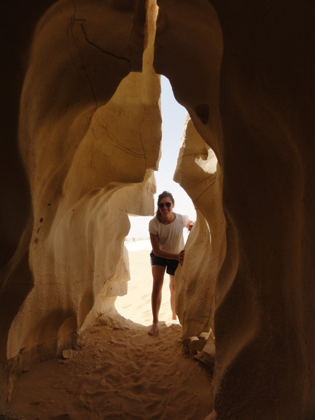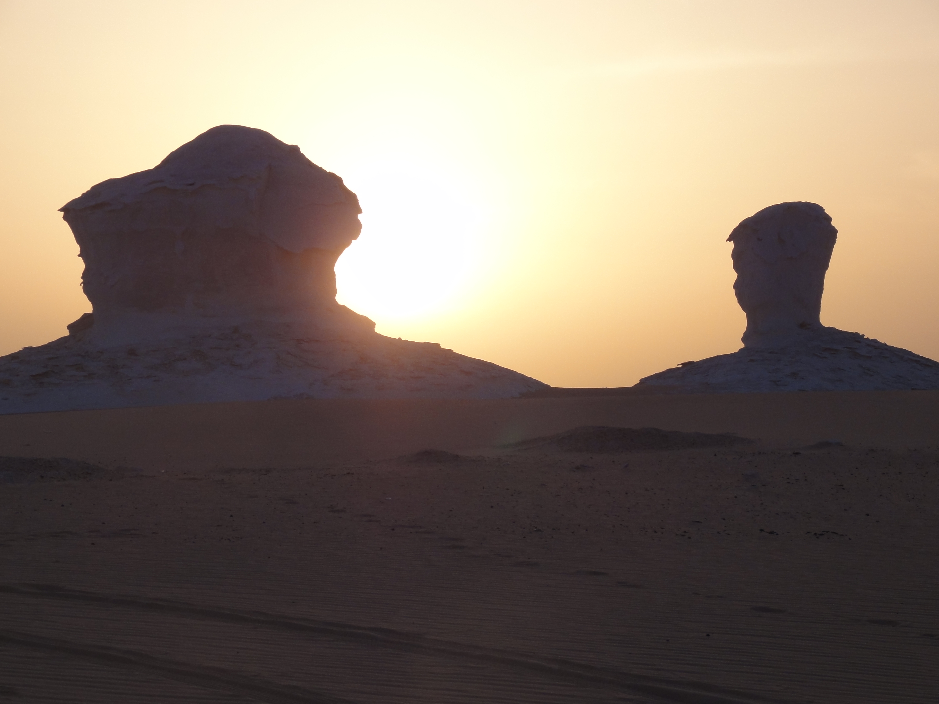 Regardless, I was feeling a bit better by the time we headed out into the desert. I abstained from sandboarding (opting instead to sit in a hole in the shade that Simon had dug for me) and only hiked halfway up a craggy hill, but I enjoyed the scenery nonetheless. By the time we reached the towering white monoliths that beckon tourists to the White Desert, I was feeling better and completely inspired by it all. Our guide told us that the desert and much of Egypt was probably once at the bottom of the Dead Sea. Evidence can be found in some remote region of the desert called the Valley of the Whales, where whale bones reside, suggesting that yes, this was once an ocean floor. Er, sea floor.