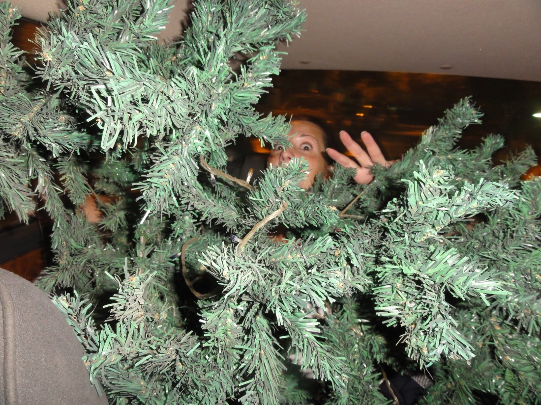 So Shannon got in first and we stuffed the tree across her lap, driving down narrow streets with the base of the tree sticking out the window. And by the time I got home, sweaty again but grateful for good friends, it was so late that there was no way I was going to make the bus.