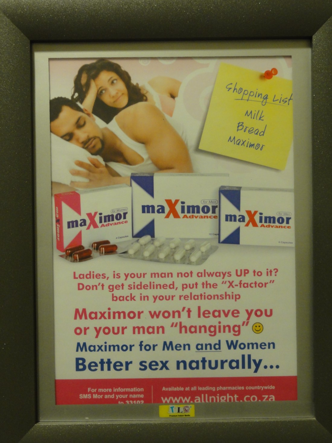 There were ads for sexual performance enhancers in the bathroom stalls.