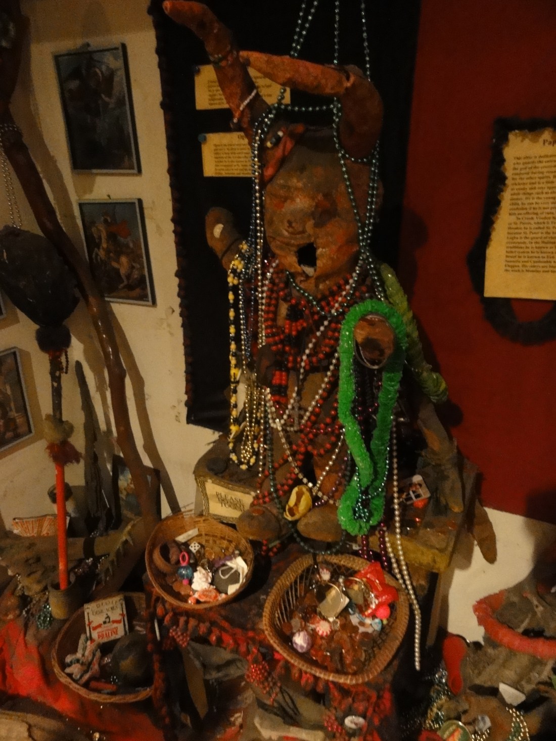 In the spirit of heaviness, we headed out to the Historic Voodoo Museum. Now, when I think Voodoo, I think of little dolls with pins stuck spitefully in painful places. But this museum really tried to emphasize that this was not the case, that over the years Voodoo – which was brought over from Benin – merged with elements of Catholicism and is a peaceful ceremony. Still, some of the rituals – like dancing with skeletons in order to communicate with the other side – spooked us a bit and we were happy enough to leave. (Worth it? Sure, since New Orleans is famous for its Voodoo history, especially concerning Marie Laveaux.)
