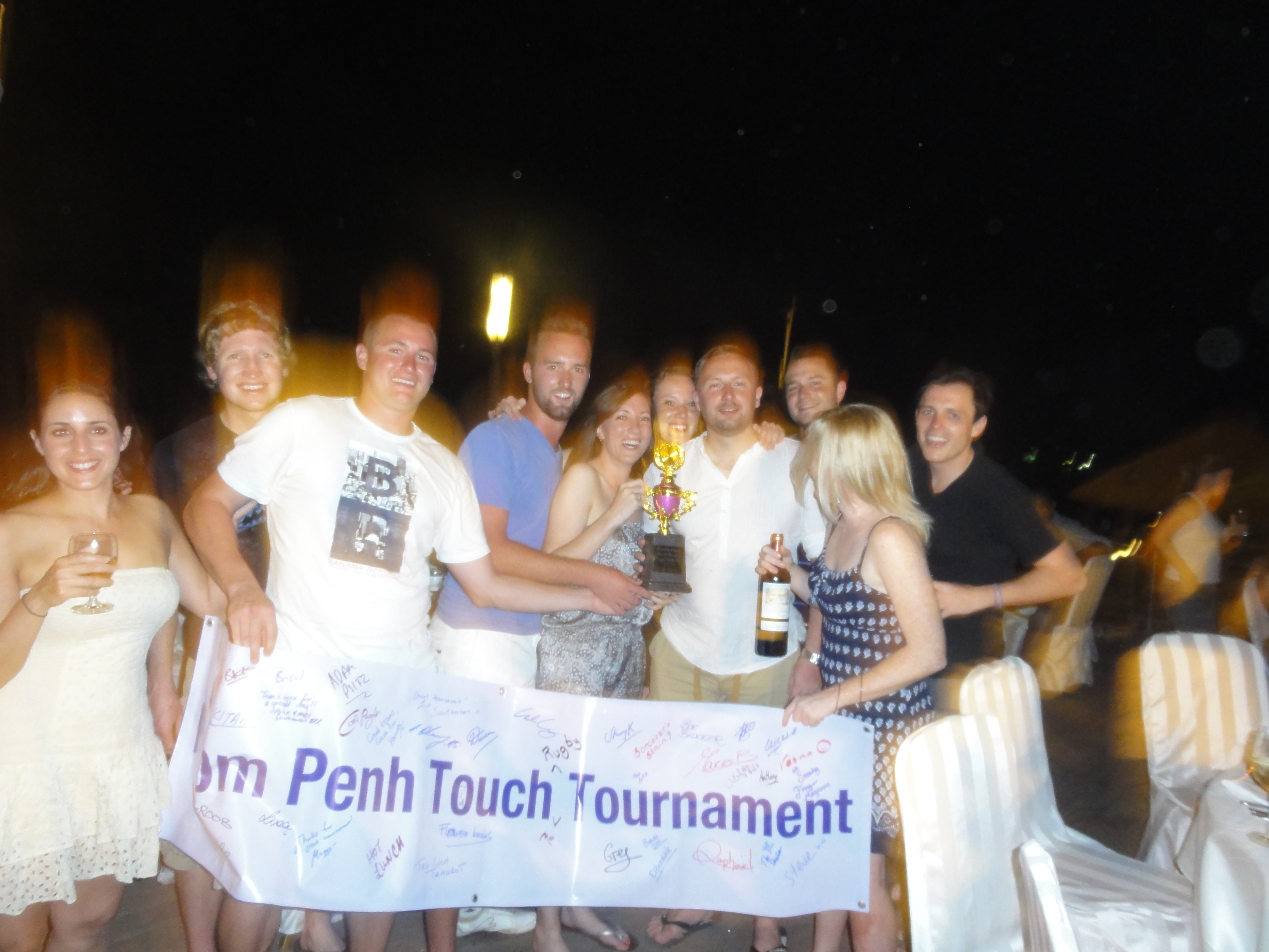 That night, despite being completely wrecked from 8 hours of rugby in the Cambodian heat, we all attended a pretty swanky reception held at an equally lavish hotel called the Cambodiana. Here we felt even more honored; the other teams, hailing from Thailand, Cambodia, and Singapore, presented us with the tournament banner and the second place trophy. Renae won Female MVP (and celebrated with a shot of Tabasco sauce and peach vodka from a plastic syringe) and we got special accolades for coming the farthest for the tournament. The Singapore team, whose matching bandanas and raunchy nicknames had caught our attention the night before, christened us with rugby names in a ceremony that was vulgar in the most sophisticated sense of the word.