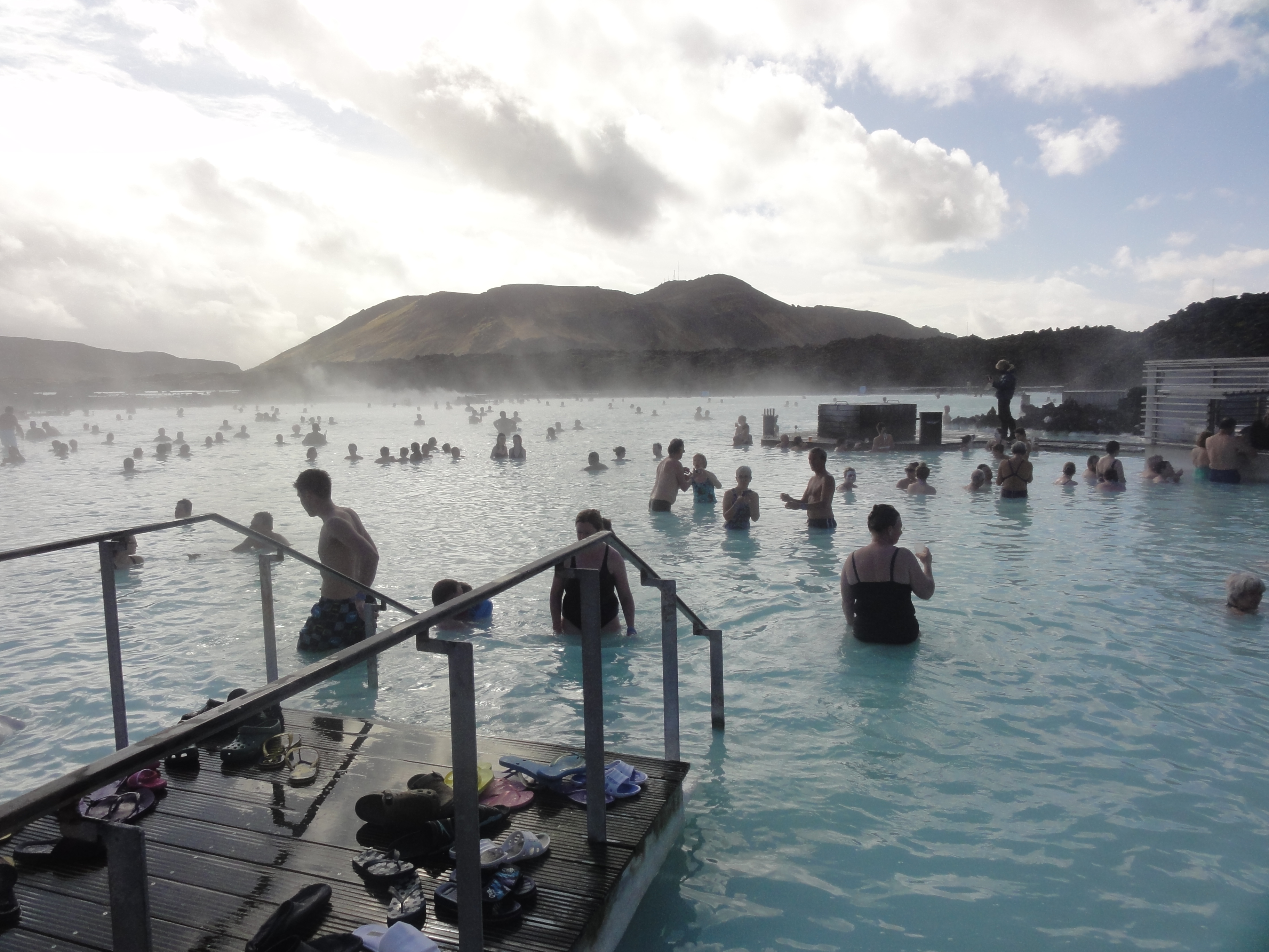 A bit pricey, the entry package included a locker, a towel, a fluffy bathrobe, one drink from the swim-up bar, and a mud mask. Before entering the lagoon, you have to shower sans swimsuit and it’s recommended that you wash your hair. Apparently, the sulfur does terrible things to your hair, but I couldn’t be bothered. I met Jamie outside the locker rooms and we padded barefoot out into the frigid mountain air.