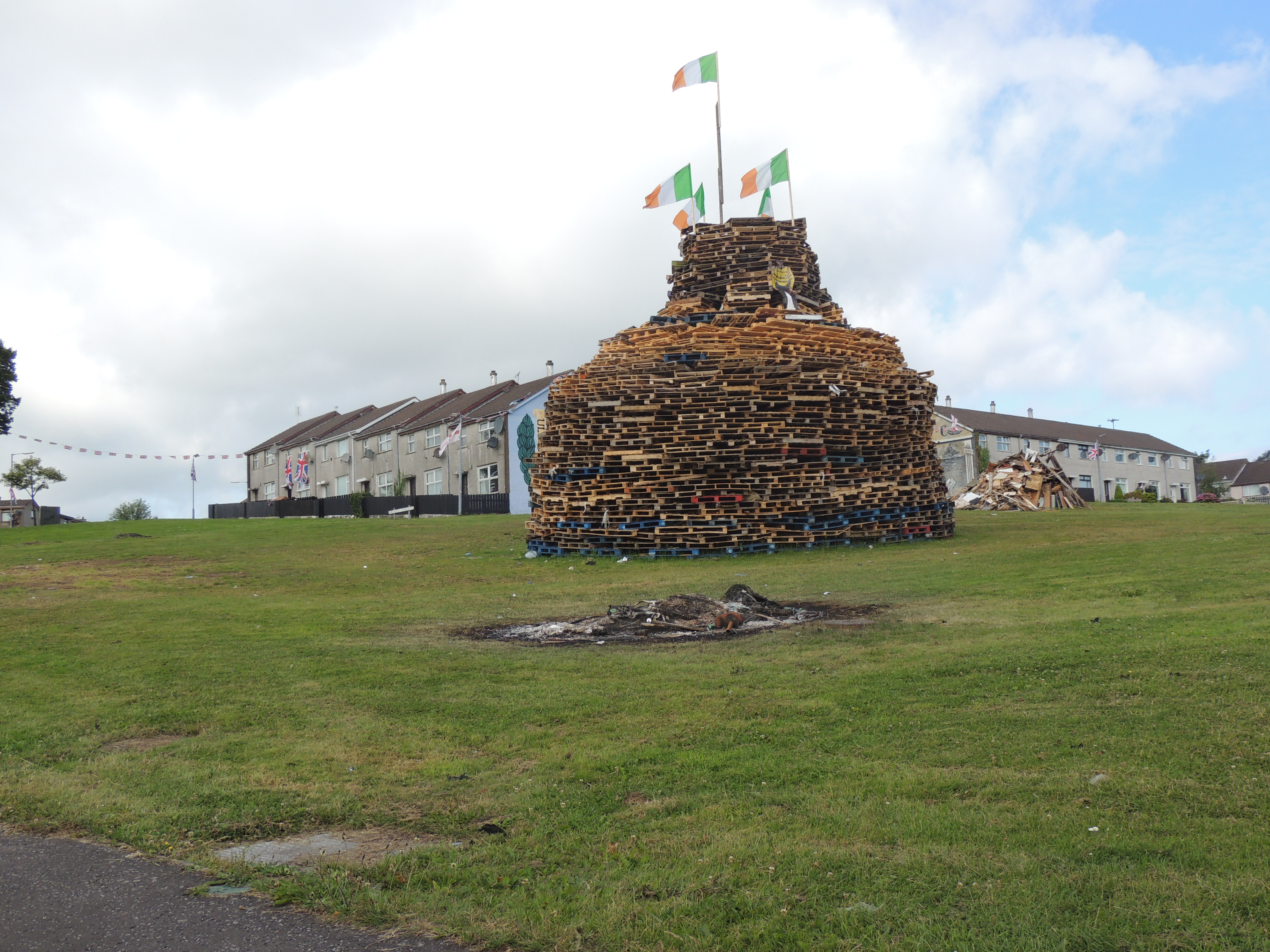 Simon was thrilled to get out of there, especially because this particular bonfire had the Irish flags mounted at the top.