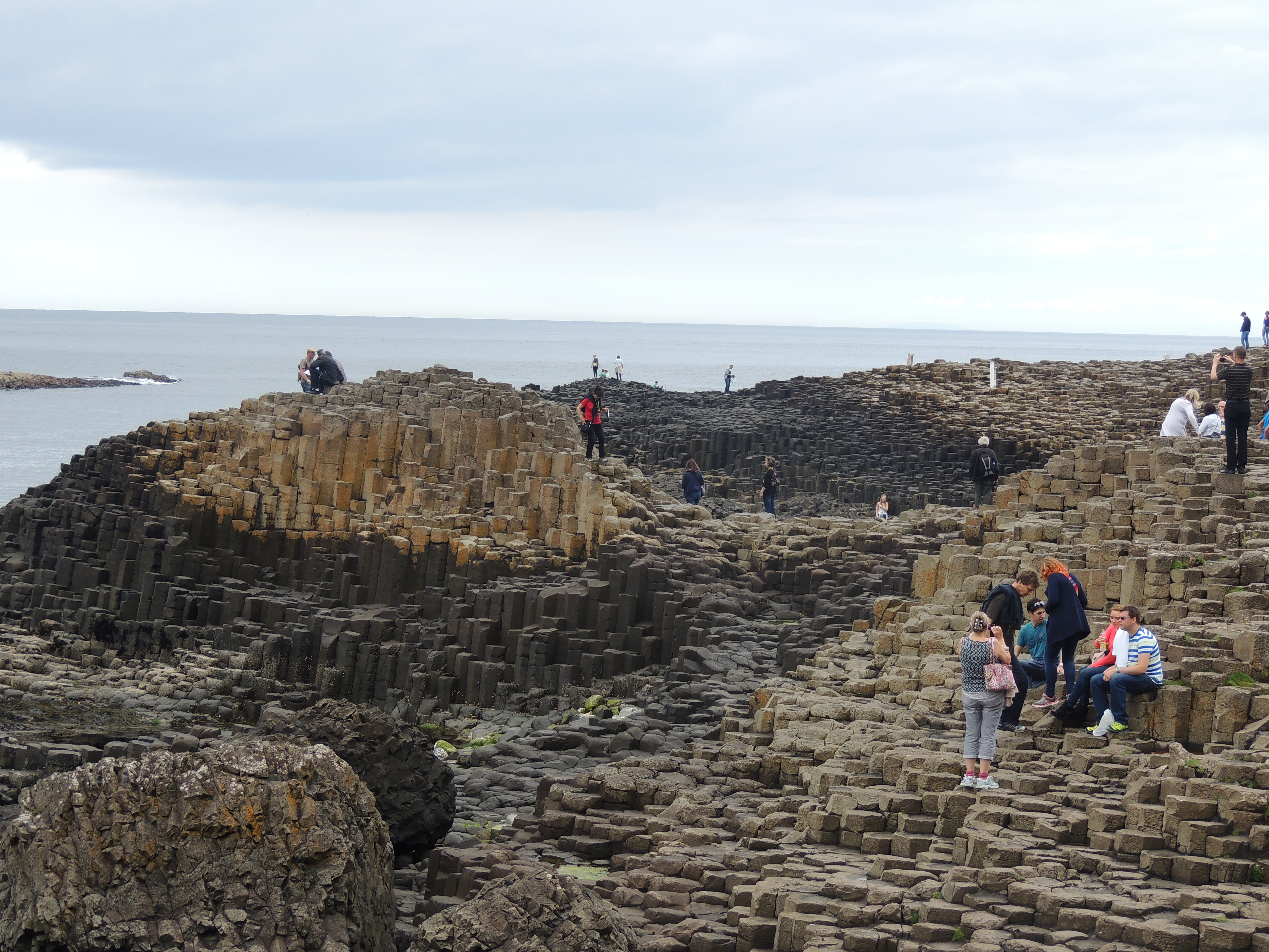 In reality, the stacked stones were cluttered with tourists. It was impossible to snap a picture without someone being in it. People sat atop them, climbed them, wedged themselves between them, and were generally part of the causeway themselves. The mist-shrouded denizens of the Antrim Coast were, as Simon had described, piles of rocks.