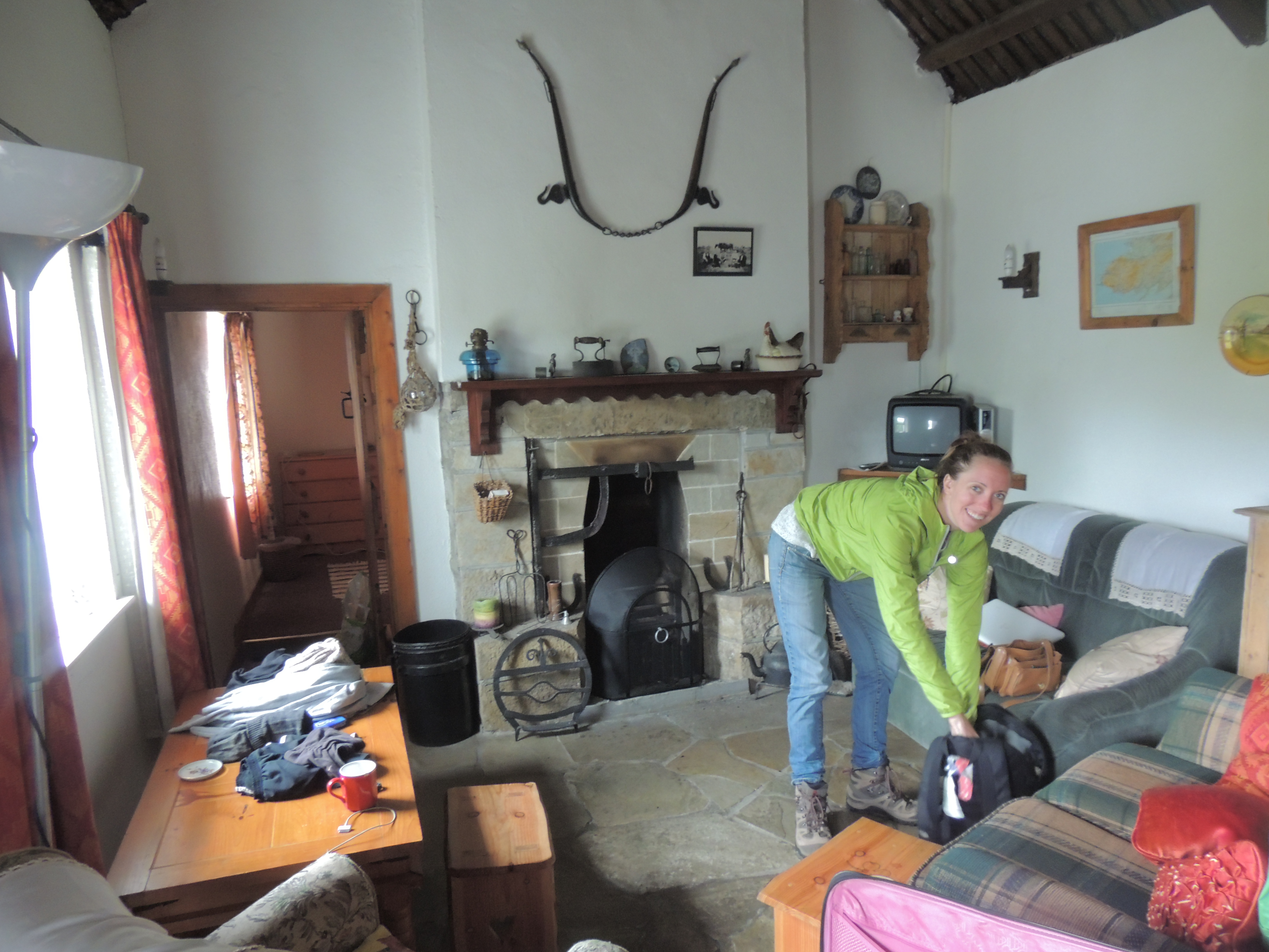 Until three, we sat up drinking wine, adding logs and peat to the fire, and listening to Simon’s tales of ghosts, hitchhikers, and the little folk.