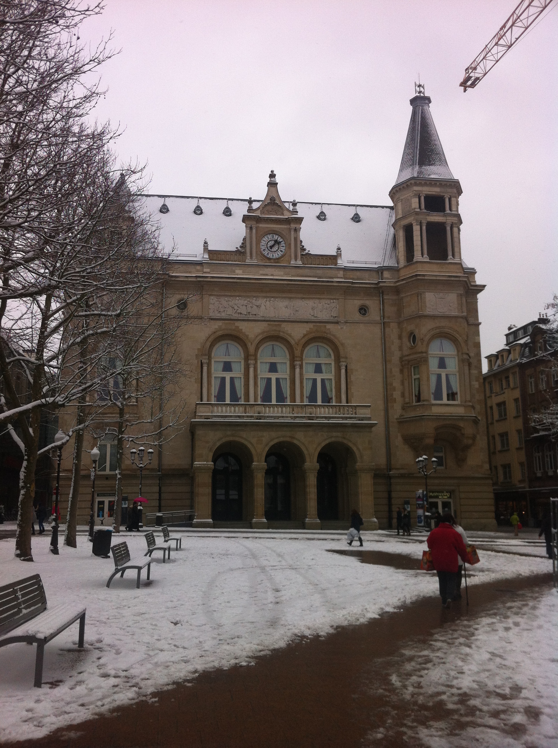 The Chocolate House was even more pleasant in the snow. The upstairs was crowded with pink-cheeked Luxembourgers dunking chocolate bricks into steaming milk while their scarves thawed over the chairbacks. A group of pre-teen girls giggled vivaciously at the corner table. We’d just about finished up when the girls broke out into a shy but well-meaning round of “Happy Birthday.”