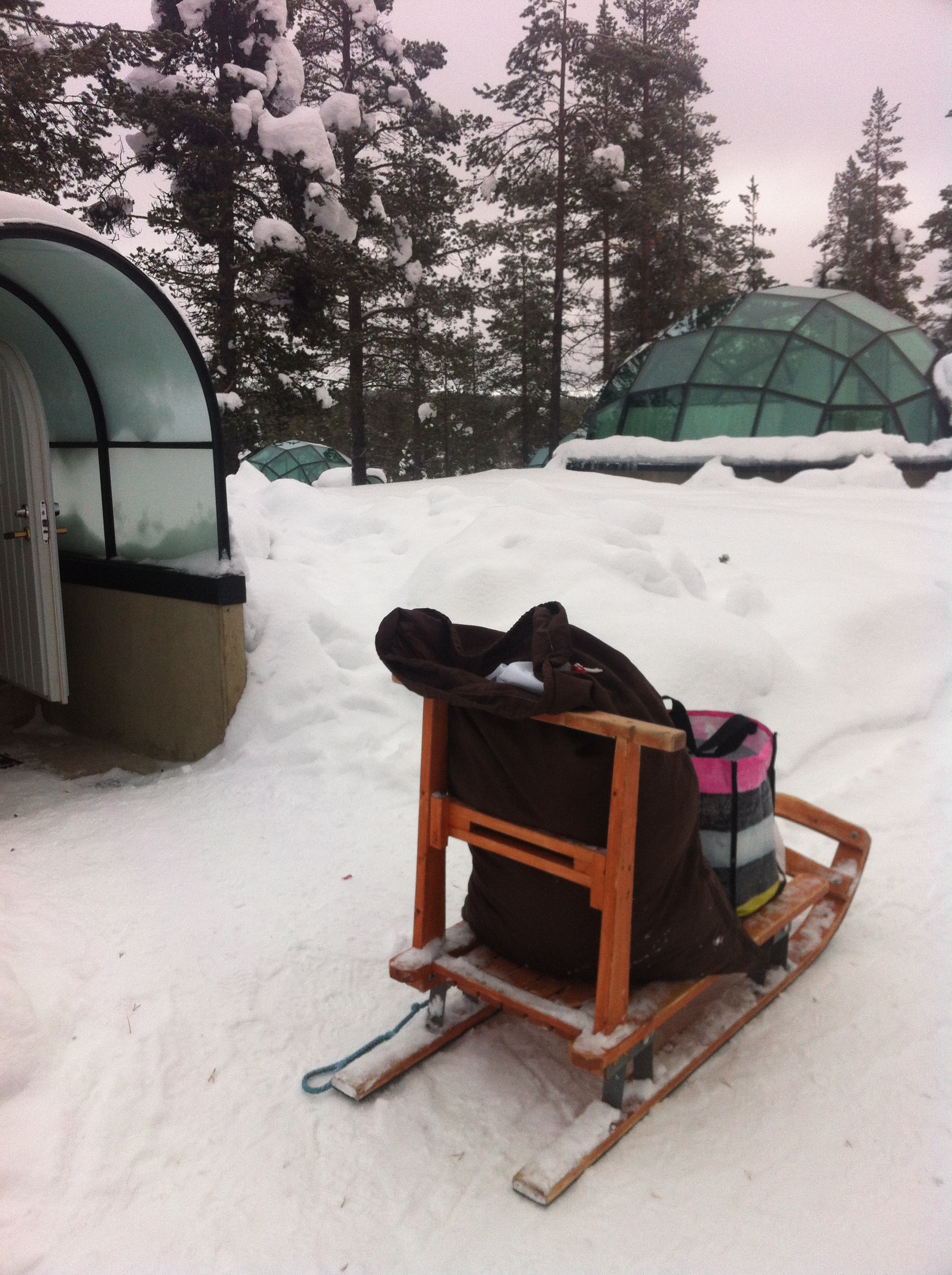 I spent one afternoon in Kakslauttanen’s downstairs piano bar, reading a book called Breakthrough: 90 Success Stories From Finland. The introduction, “Congratulations, Finland!”, set a tone of determined ambition manifested later by chapters entitled “We’ll Show Them” and “Rage to Succeed”, about a metalworks and up and coming theater respectively. Kakslauttanen earns its own chapter, and rightfully so: its seasonal snow igloos attracted awed and curious snow-making cinematographers, namely of James Bond fame. Plus, it’s home to a huge smoke sauna, an ice bar (closed on our visit, sadly), and a snow chapel for weddings. (Family, start saving now.)