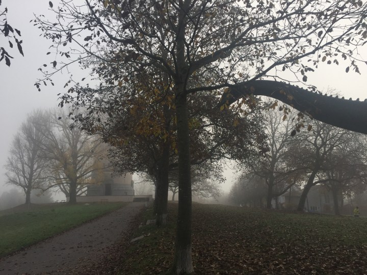 I walked out of my apartment and out to the fields in the hills behind my street to find myself wandering through a thick fog. It was spectacularly spooky. The giant water tower (wassertower) we cycle by when we take the back road home was invisible. I only knew I was approaching it because a strange, inky squiggle appeared in the mist, reaching out to me like an alien tentacle.