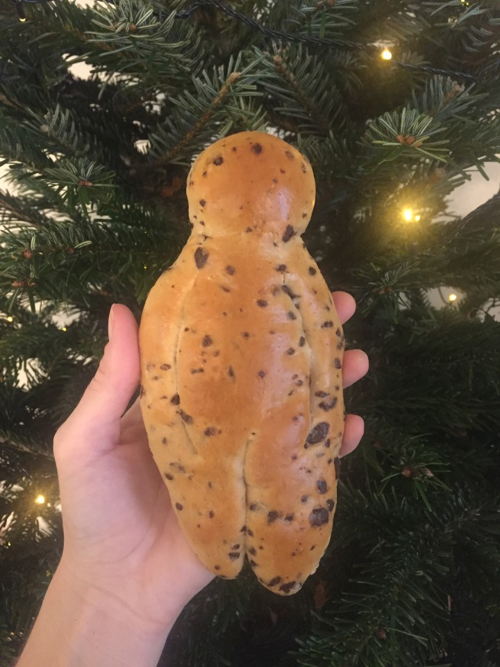I also learned of a Swiss Christmas tradition on Sunday, December 6, which is apparently St. Nicolas Day. On this day, it is customary to bake bread in the shape of a man and give him raisins for eyes. I did not bake this bread, called grattimaa, but I did purchase one at the bakery. It was a small bread with chocolate (schokkligrattimaa) and it was called Tom. I will admit, I was very tempted to buy a larger bread named Luca, weighing in at a hefty 1kg, but I managed to talk myself out of it.