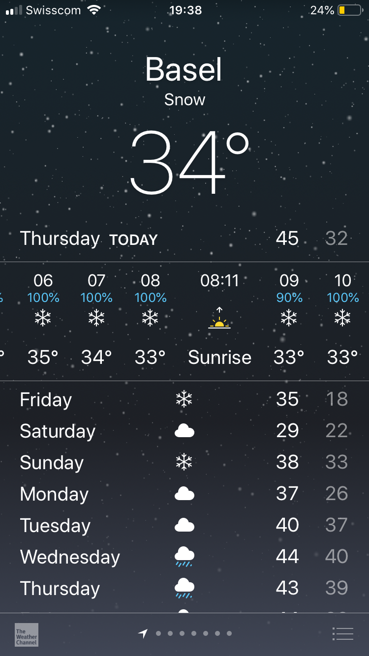 Basel is spoiling me. My weather app, which has a poor track record for accuracy, again promised me snow earlier this week. I’ve taken to loathing the app in recent days, as I prepare excitedly to wake up to a snow-filled wonderland and instead wake up to rain. But not this time!