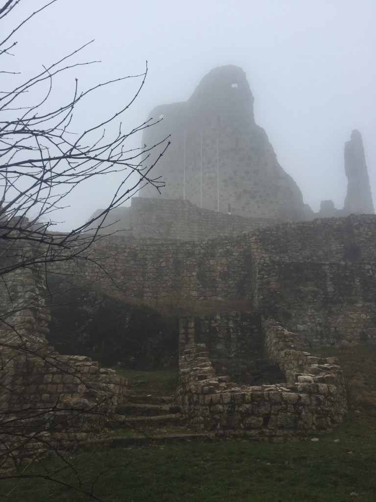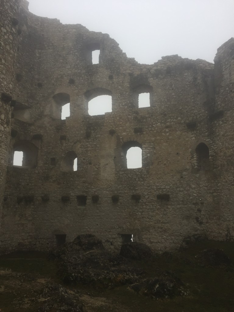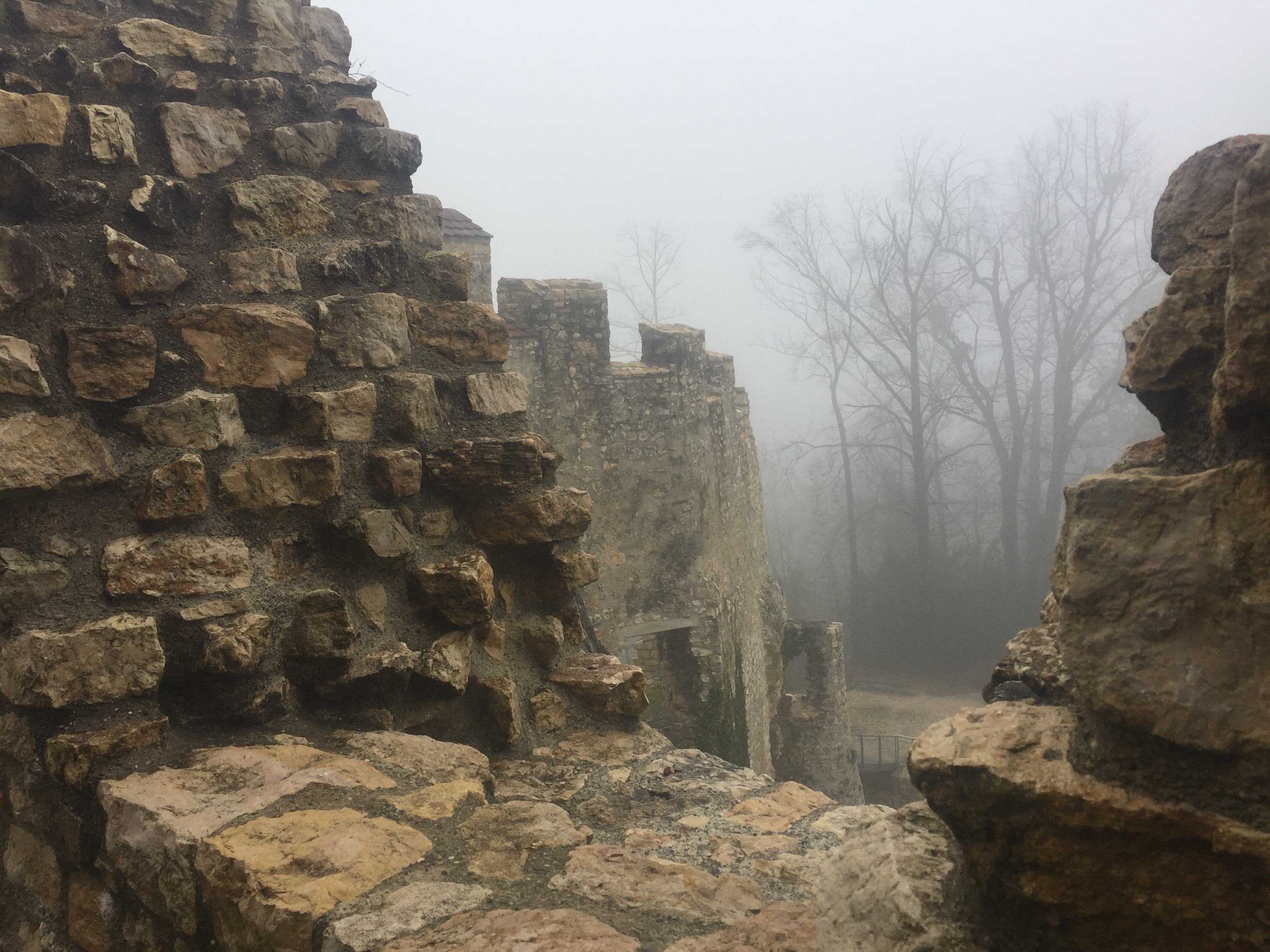 Just wow. Not only could I ogle the castle from the road, but paths and metal steps invited me to explore the ruins. All of the signs were in German, but I gathered from one of them that the castle was as old as 1499. Wandering through the ruins, watching parapets and stone towers slowly materialize out of the mist, I felt like I was traveling back in time.