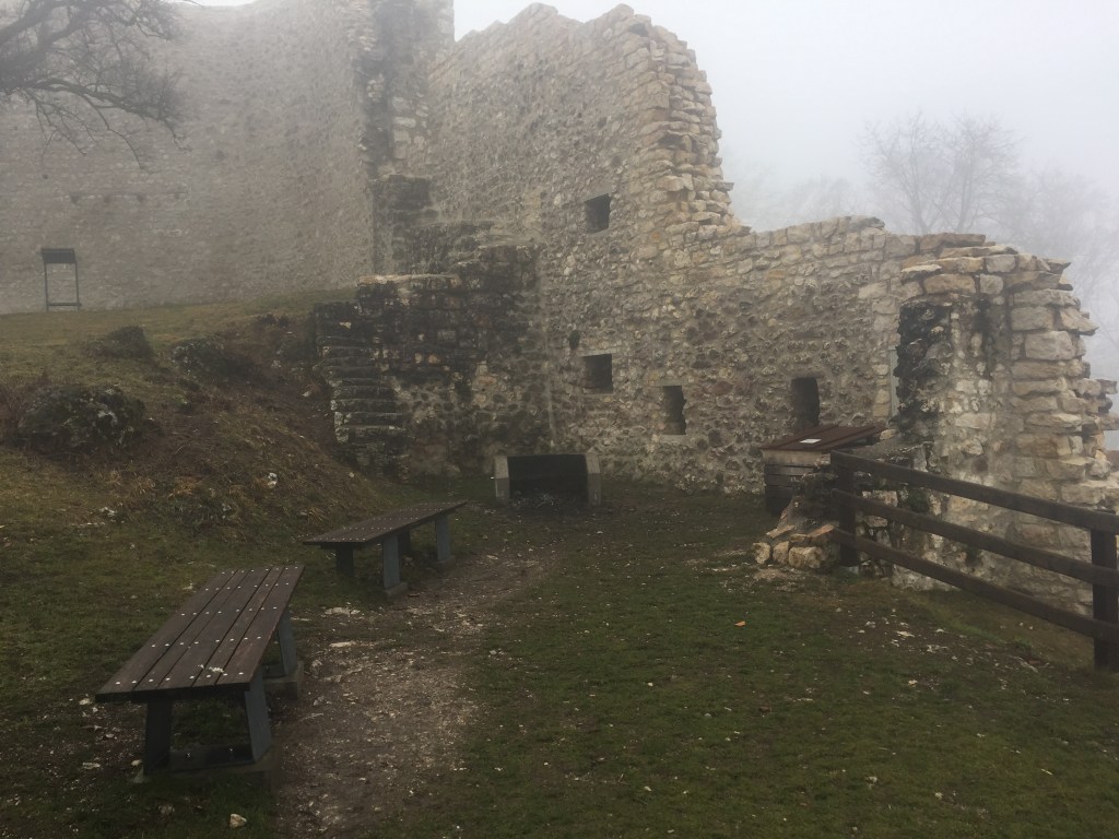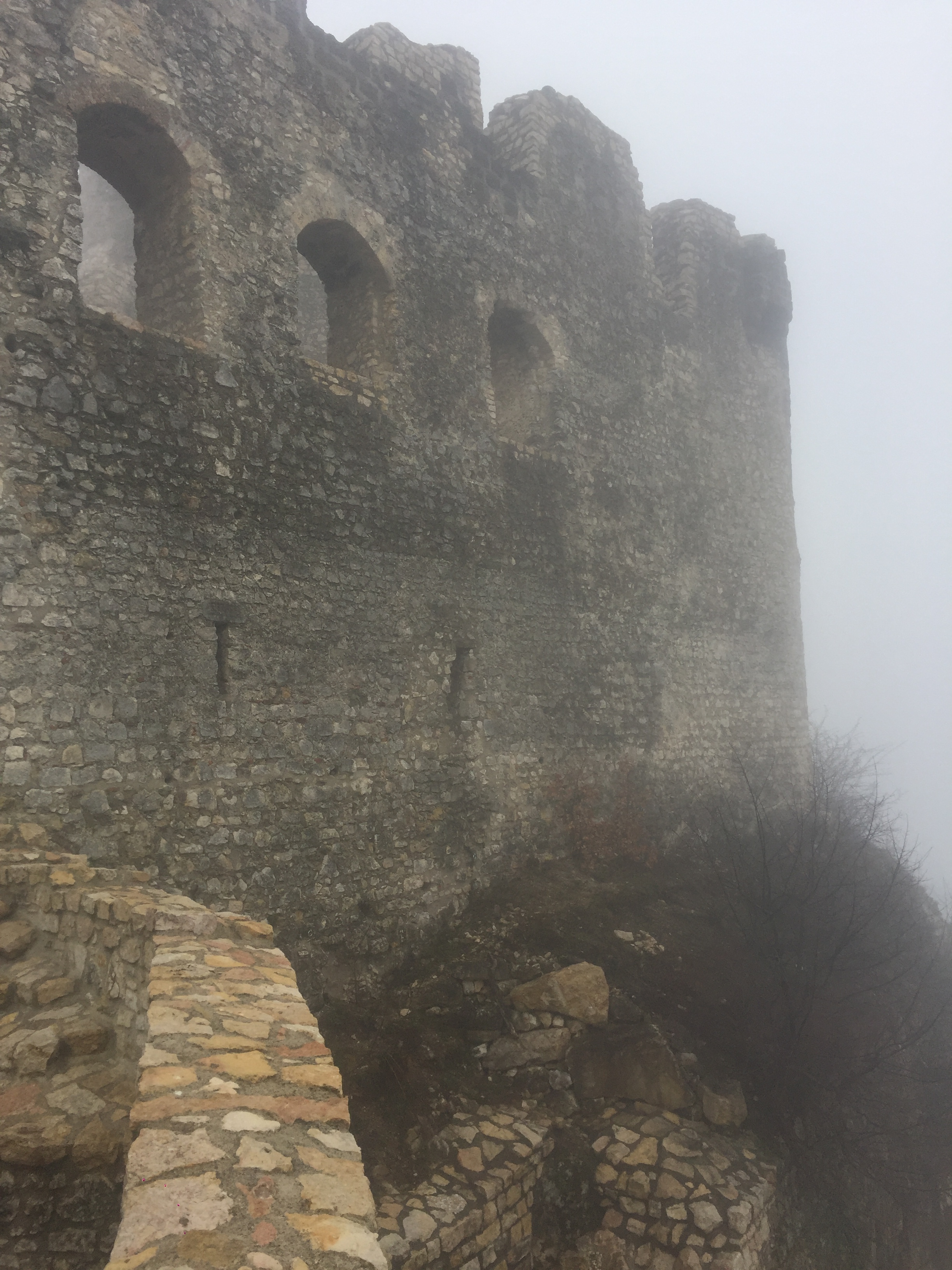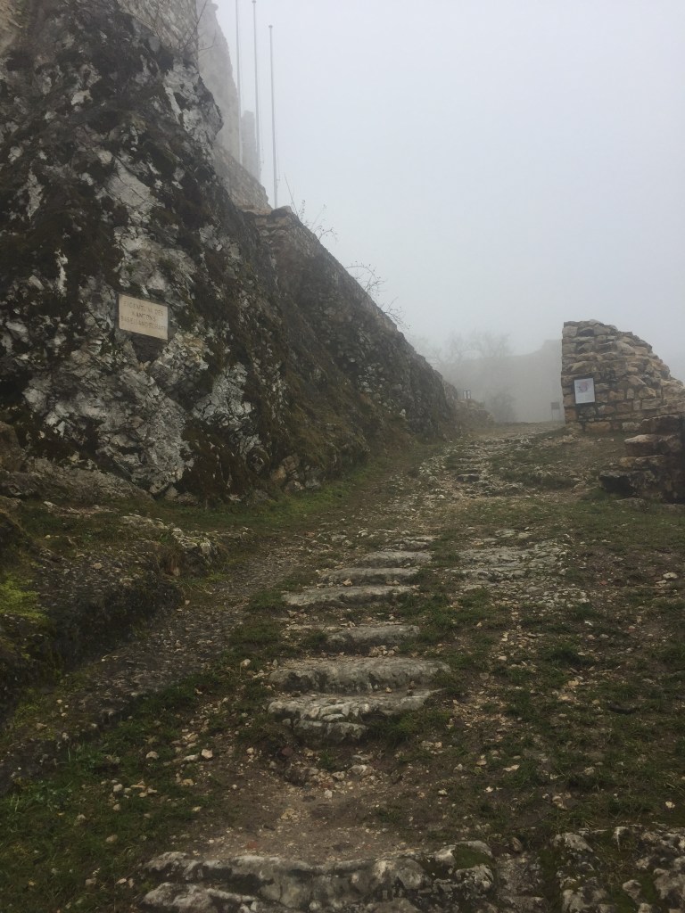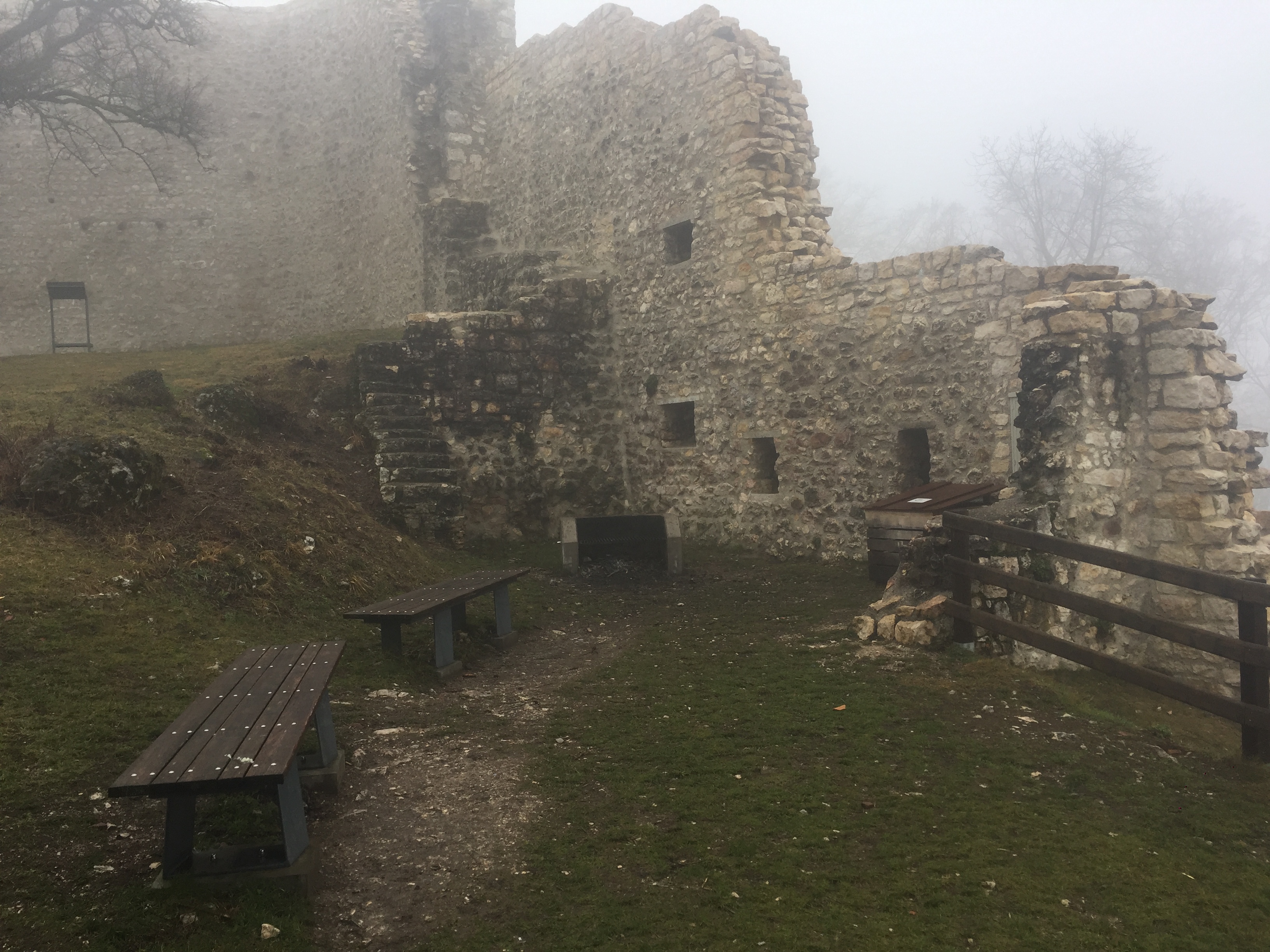 Just wow. Not only could I ogle the castle from the road, but paths and metal steps invited me to explore the ruins. All of the signs were in German, but I gathered from one of them that the castle was as old as 1499. Wandering through the ruins, watching parapets and stone towers slowly materialize out of the mist, I felt like I was traveling back in time.