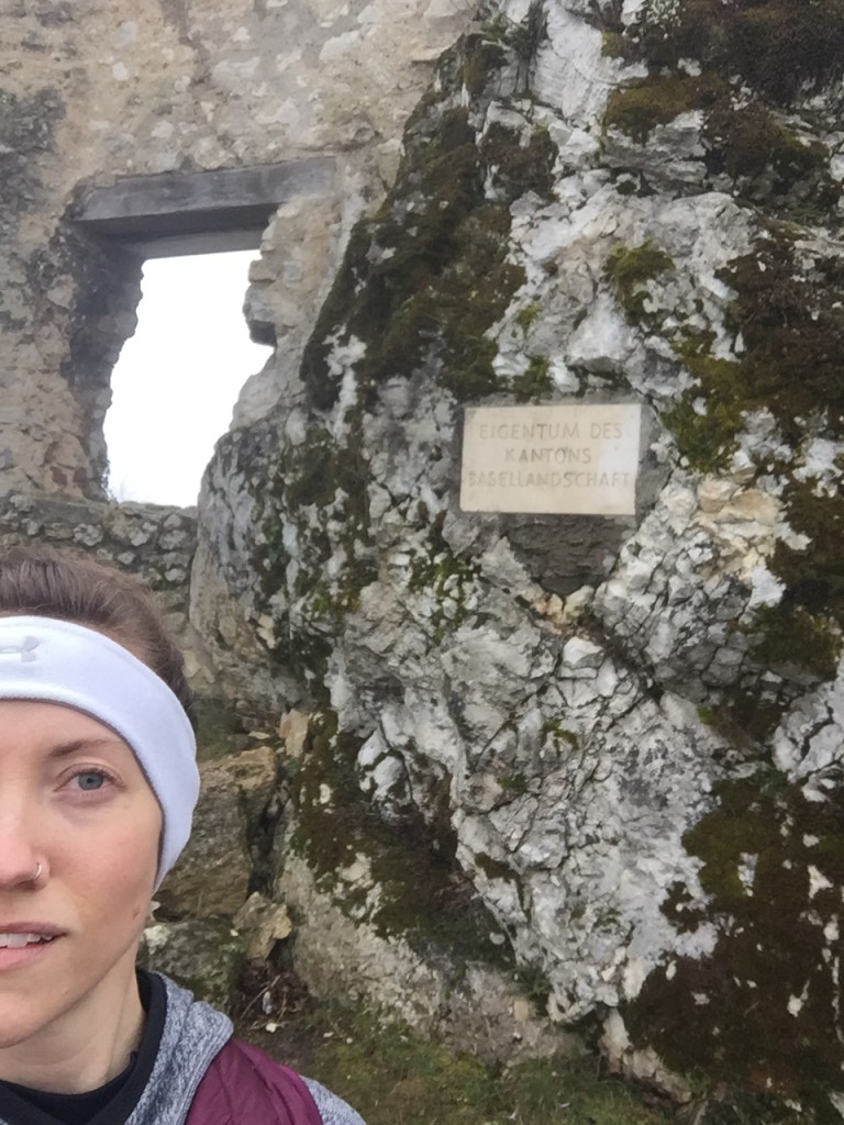 Undeterred, I opened Google Maps and typed in “castle”. Three options appeared. I had to pause there to let that sink in. I live in a place where there is no shortage of castles to run to. Fabulous. I opted for Pfeffingen Castle, because it seemed closest at approximately 10 kilometers away. My weather app forecast cloudy skies and a brisk 38 degrees, so I layered on my puffy vest (with two masks in my pocket in case I decided to tram back), bundled up, and headed out the door.