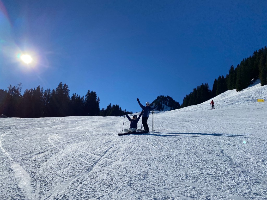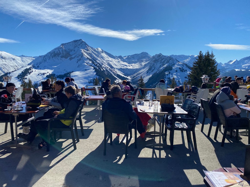 I can confirm that Gstaad’s slopes are indeed a dream for snowboarders. I took the gondola up from Saanenmöser to the top, boarded down, and then discovered the Hornberg chairlift, which was even better. After a few runs, I boarded down to meet everyone at the bottom of the gondola, and up we went.