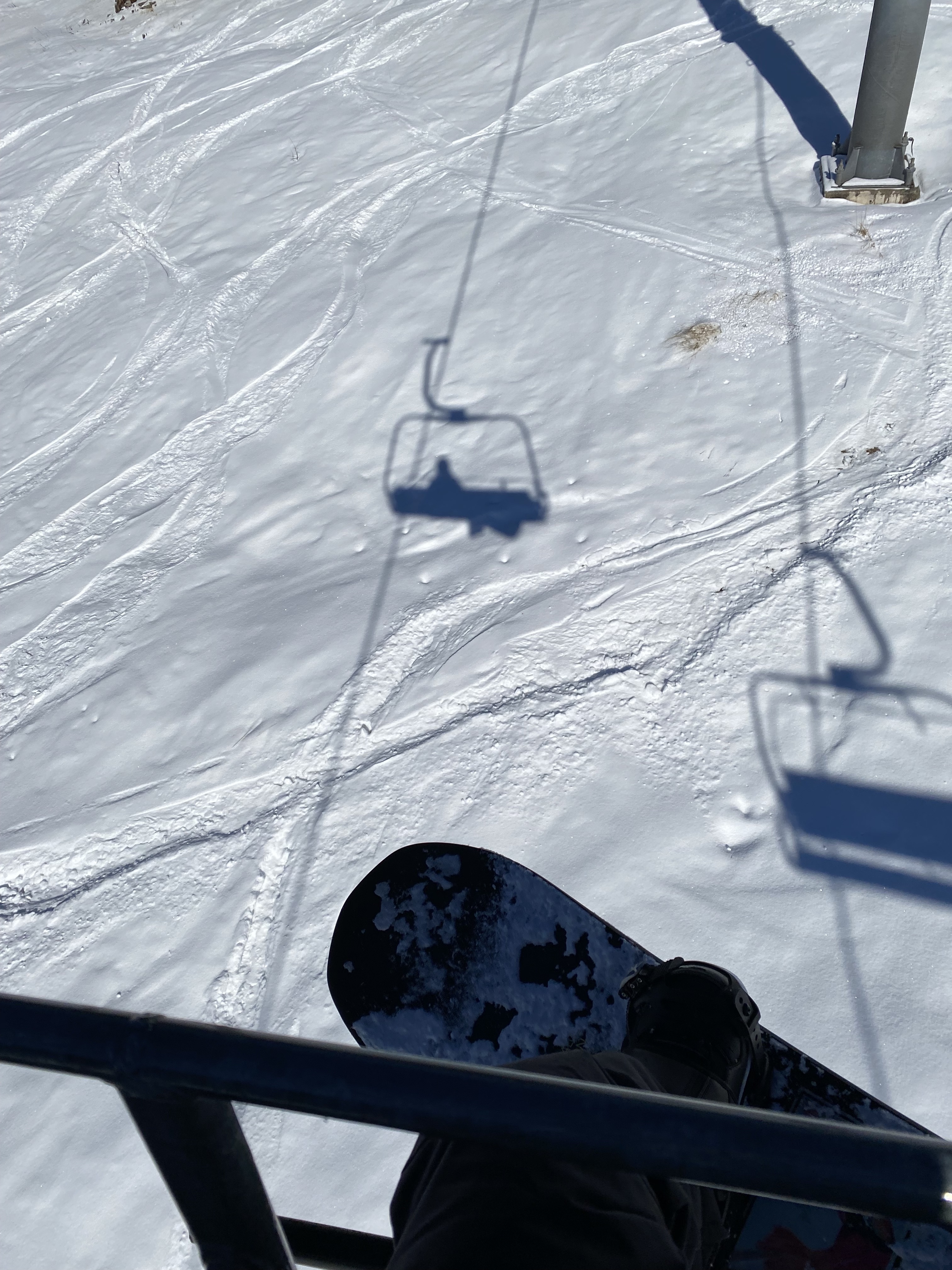 Back at the top, my map told me that next to Jean-Pierre was a red trail that would lead down, so I figured I’d give it a go. But when I got there, it was closed. This meant I had to take a different red, which led somewhere completely different, but it was okay. I ended up at a chairlift and, due to a thinning crowd, I managed to score my own little chair.