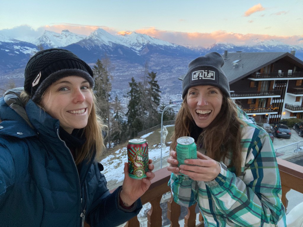 After a beer so cold it grew icicles, and a hot gluhwein for Mel, we took the gondola back down and checked into the hotel. It was then that I realized that I hadn’t eaten anything all day except a slice of banana bread with my third mug of coffee in the morning. We booked a 6:30pm dinner slot at the restaurant, unpacked in our rooms, and bundled back up to take in the view from Mel’s balcony while sipping this amazing beer that Blair supplied.