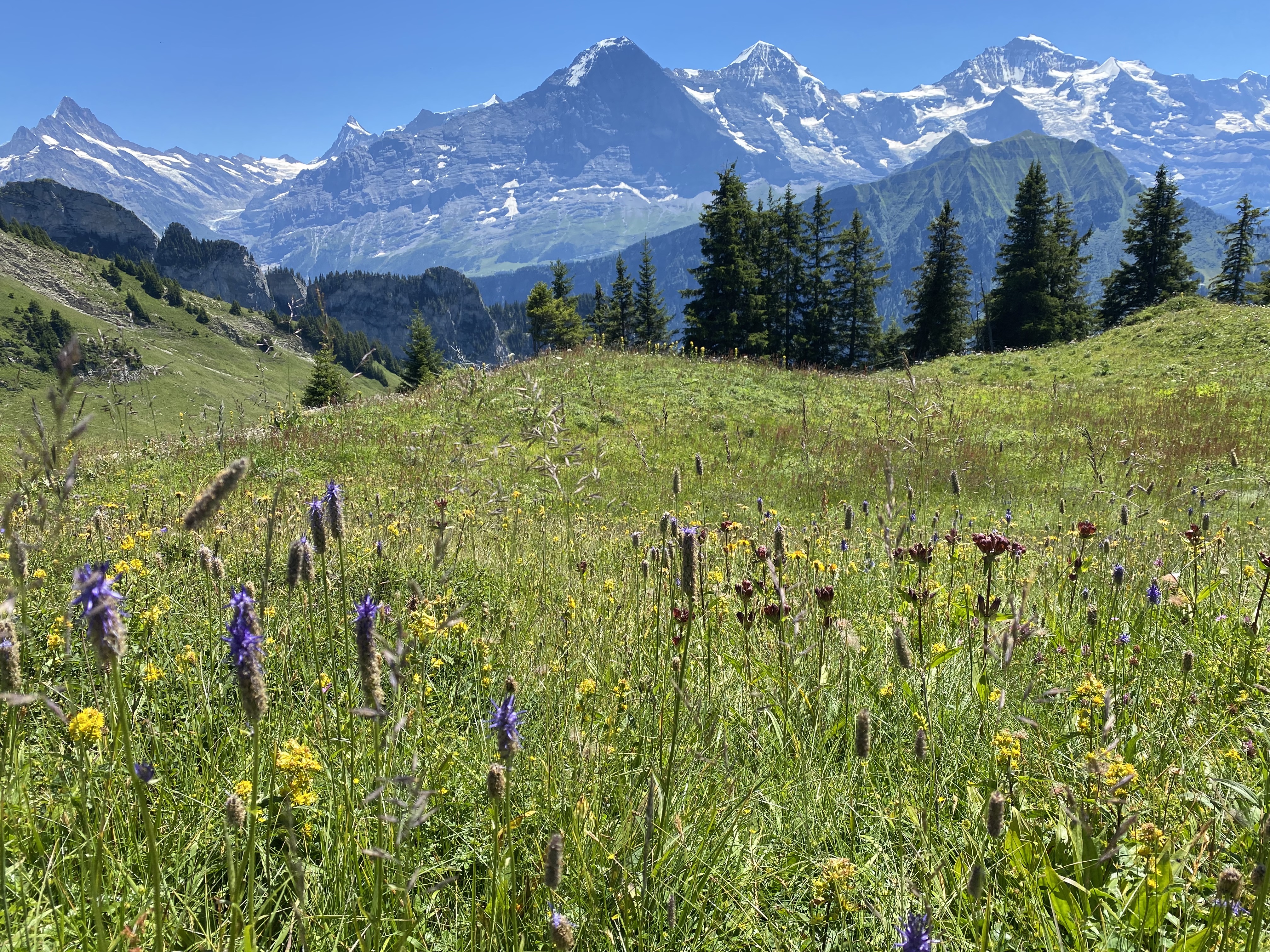 “Bachalpsee is the only lake, and it’s too cold,” I was told. Still, he sent me a handful of hikes to try, with one of his favorite being the hike from First to Schnyige Platte.