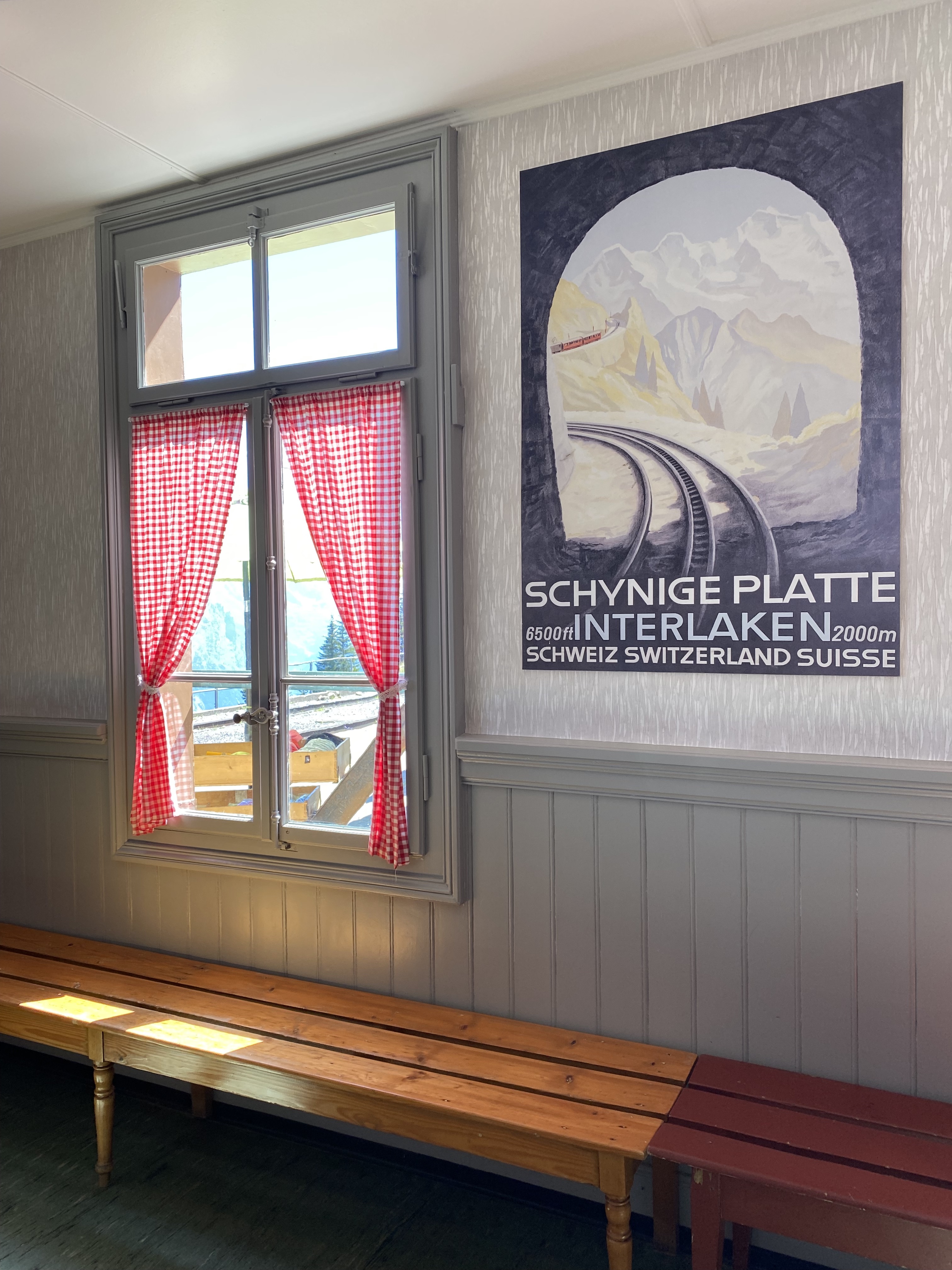 The advice was to take the train from Grindelwald to Wilderswil, then the cog train from Wilderswil up to Schnyige Platte (pronounced Shuh-nee-gee Plat-tuh), then hike all the way back to First and take the gondola back down. The last gondola departs First in the summer at 5:30pm.