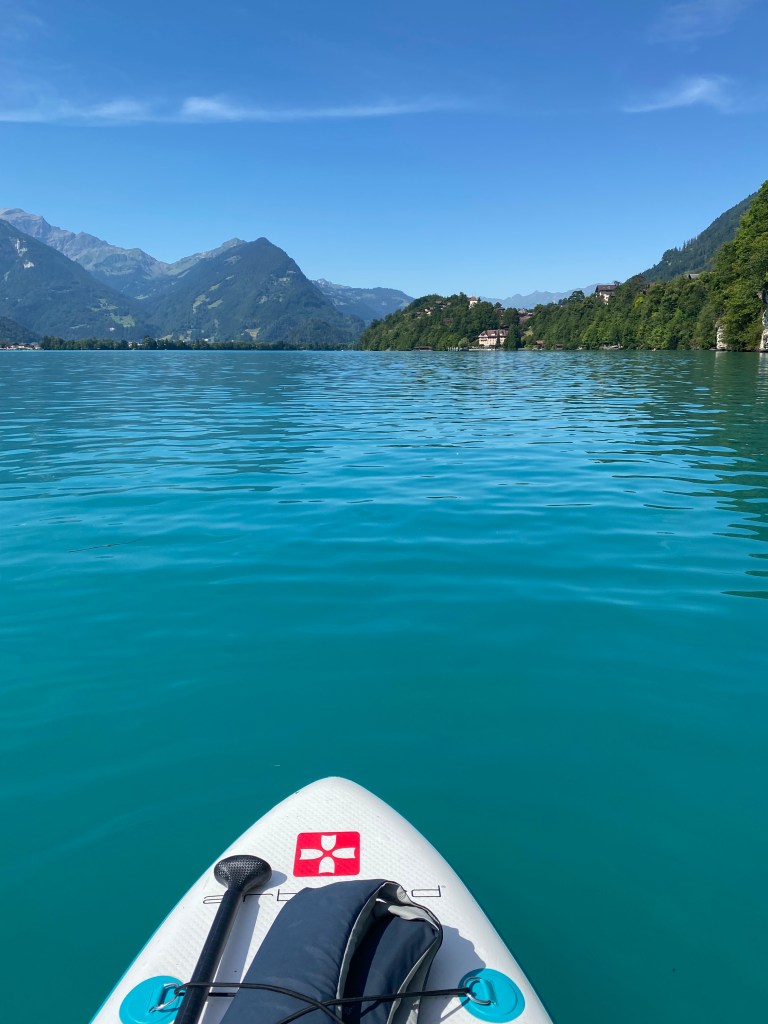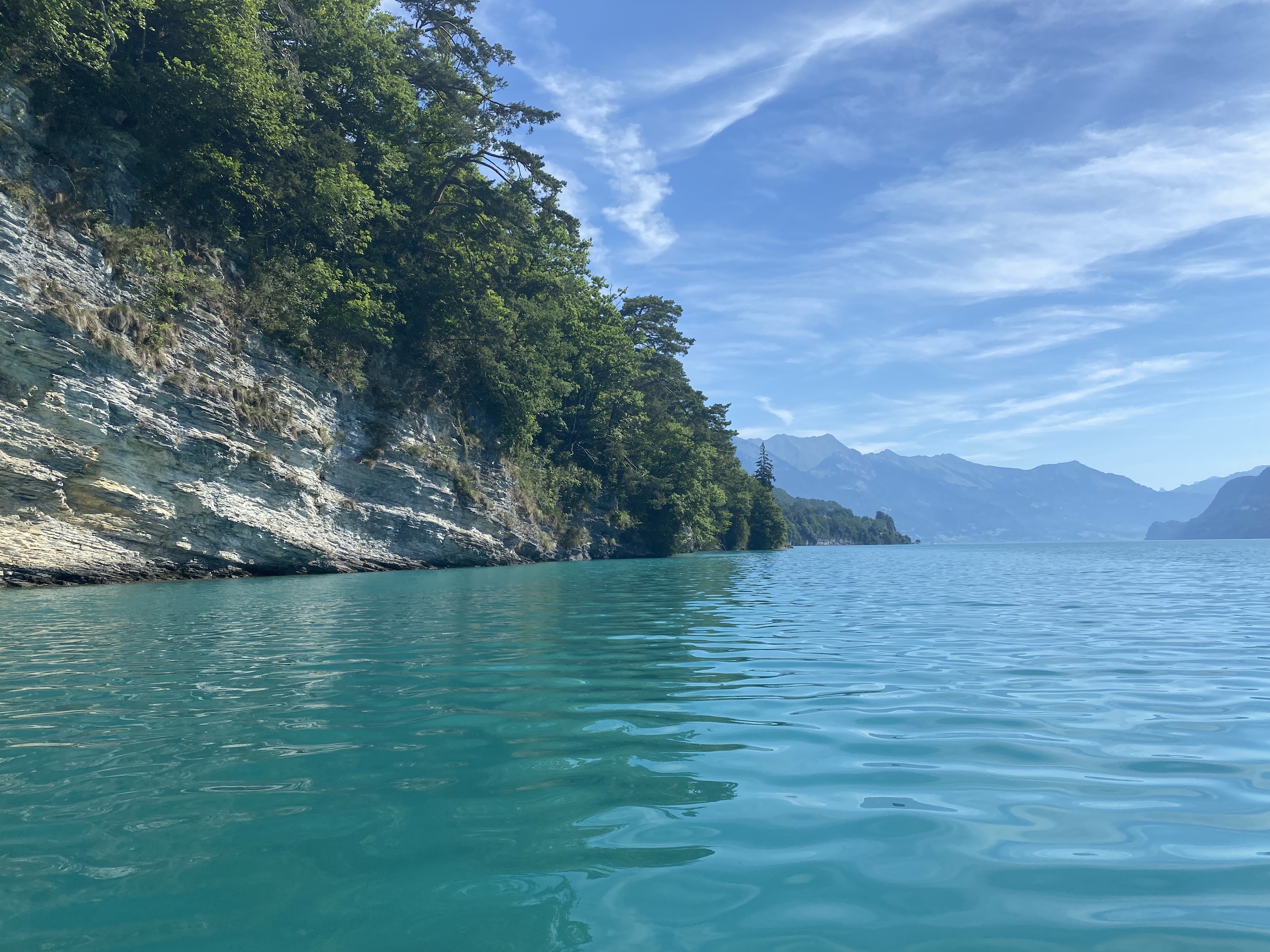 Nothing relaxes me the way water does. Alone on the beach in Sandy Hook at 6am, just me and the sunrise and the surf; floating down the Rhine clinging to a Wickelfisch as the sun sinks below the skyline; bobbing on a paddleboard in the Shrewsbury River, a White Claw perched on the front of my board; or here, on the beautiful cloudy-aquamarine water of Lake Brienz that was too blue to be true.