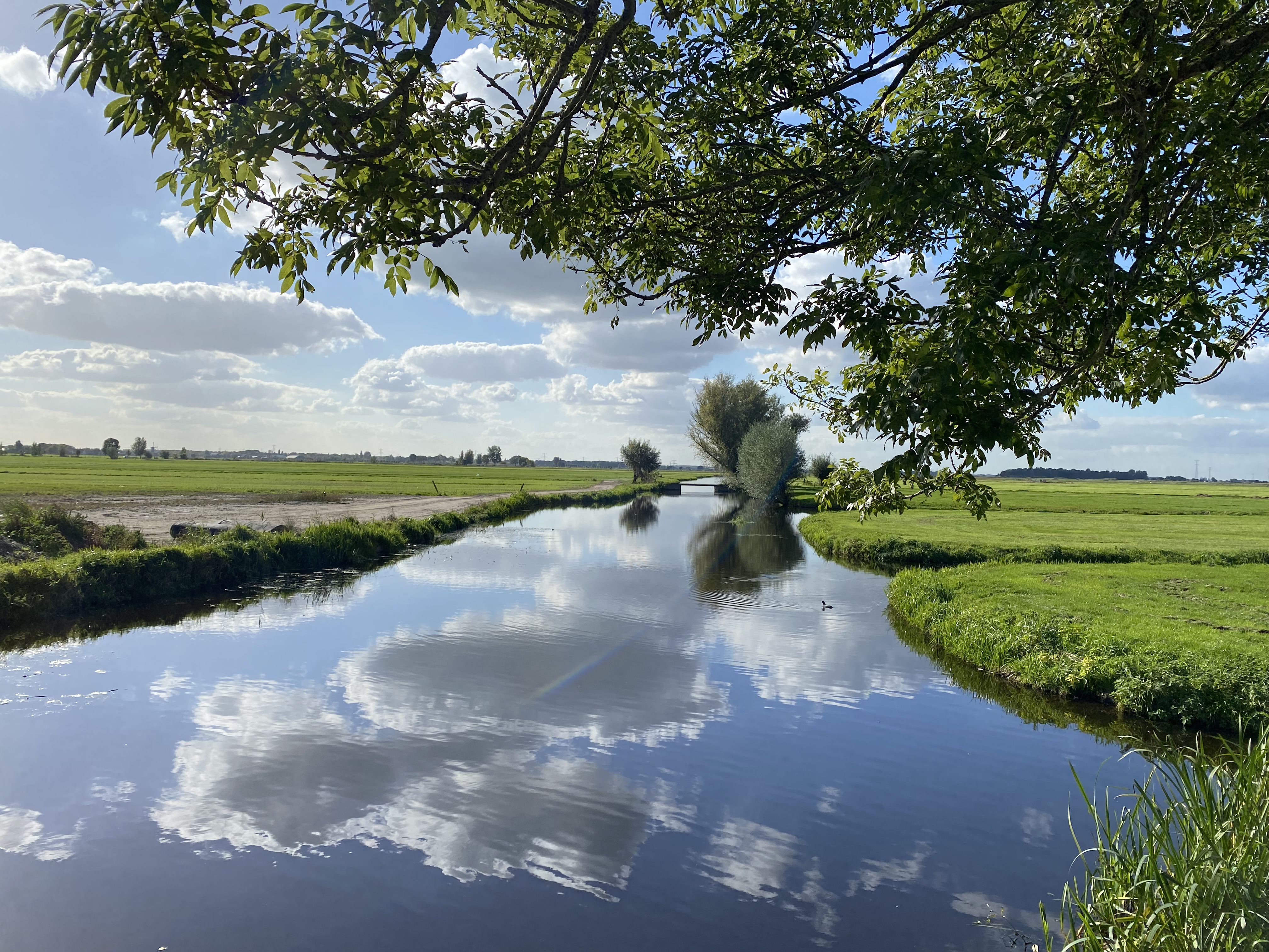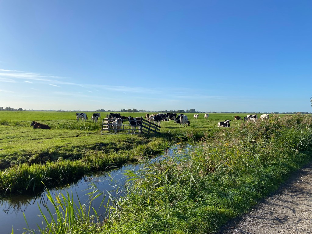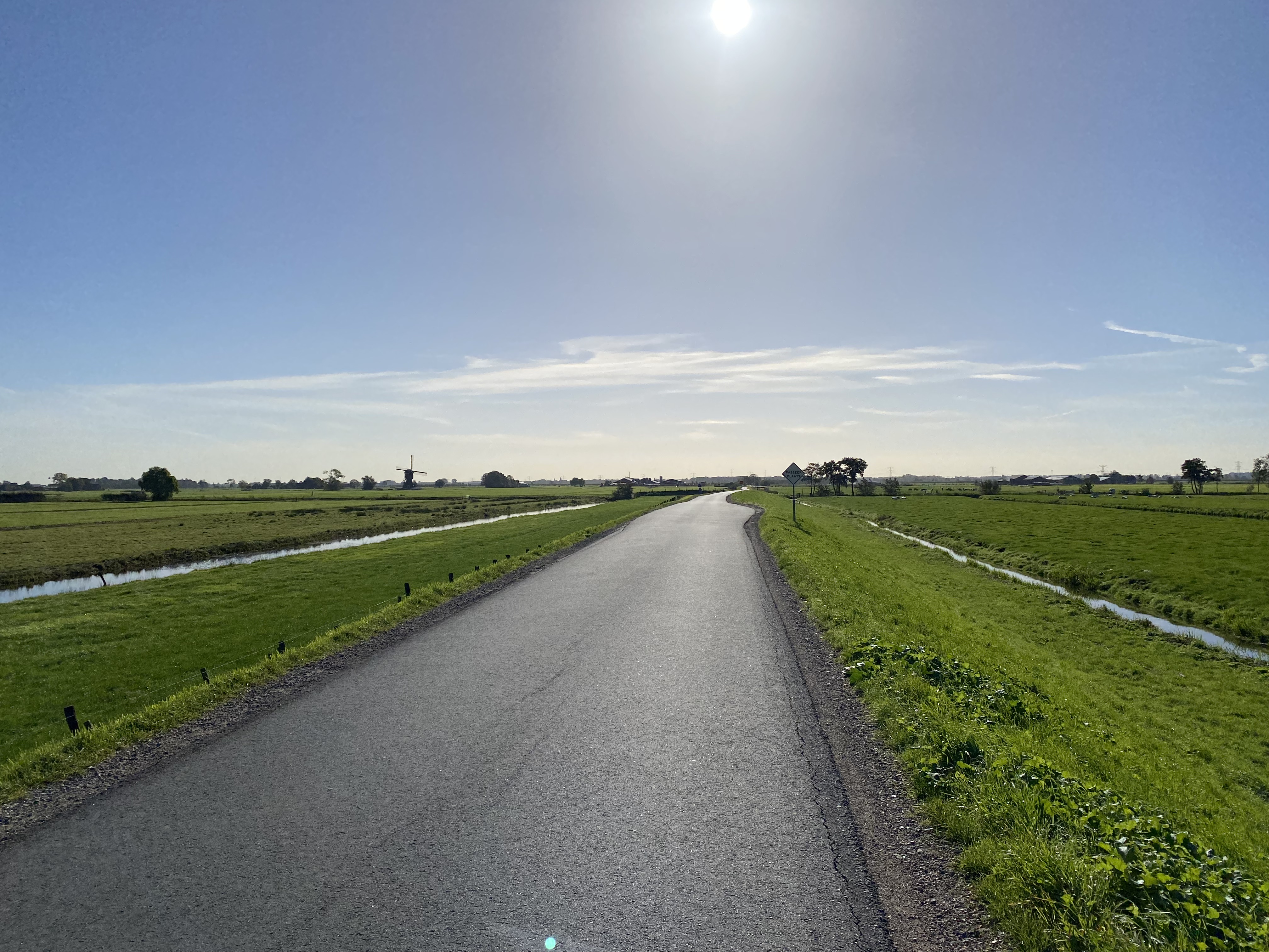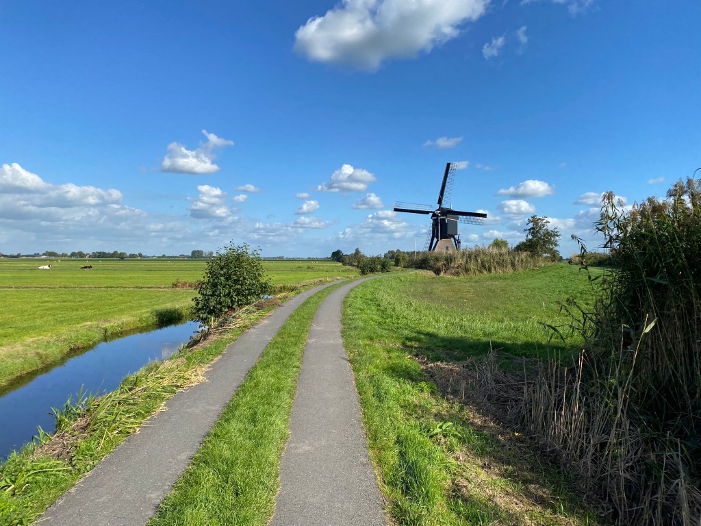 “Take the first left, then over the dike, then right,” Rien told me, so I did. I wasn’t expecting a highway, but the road over the dike was a main one and didn’t feel right. After several turns around and confusion, I got back on the dike road and continued along until I saw a bike path sign pointing me down onto the polder.