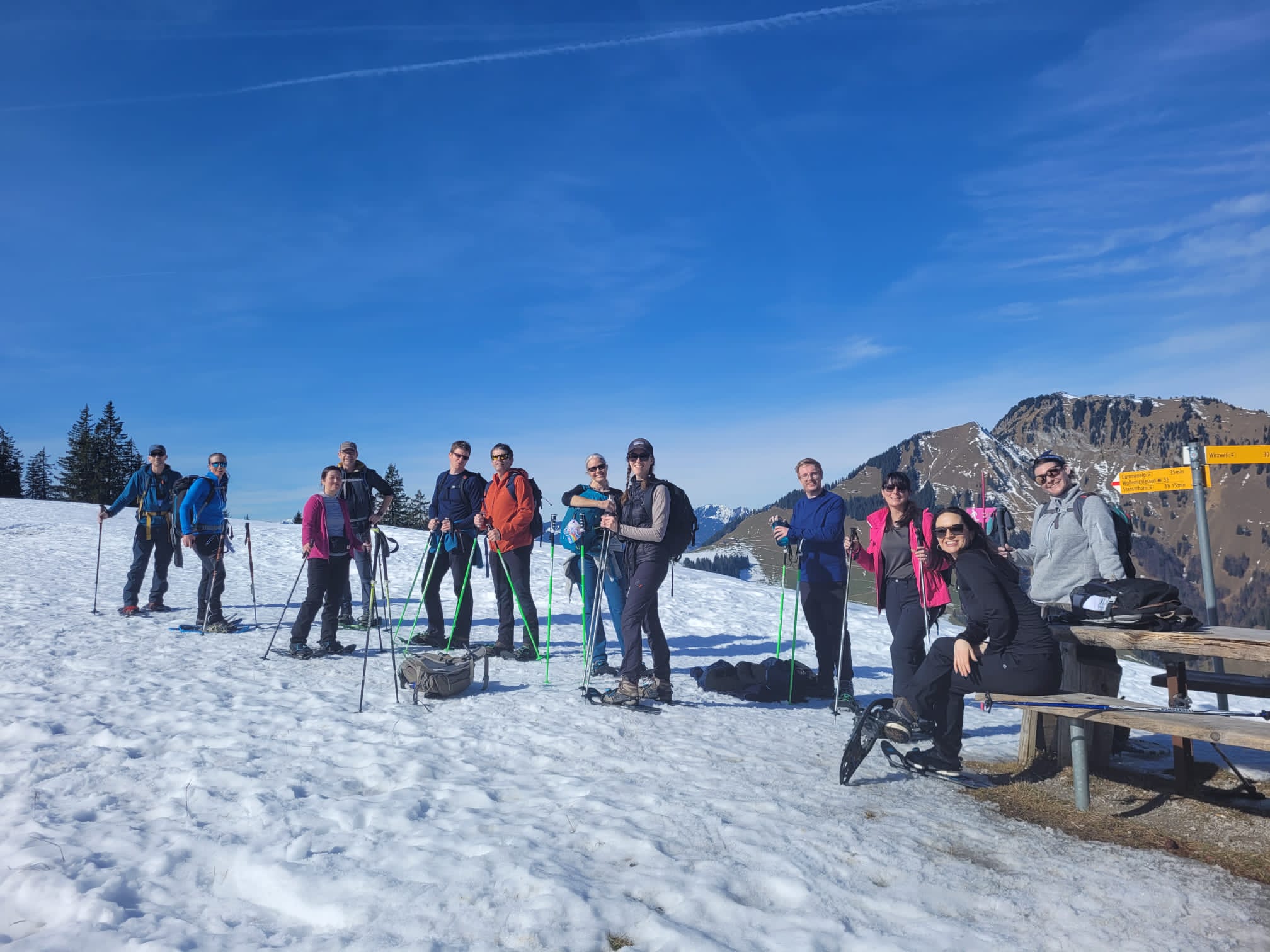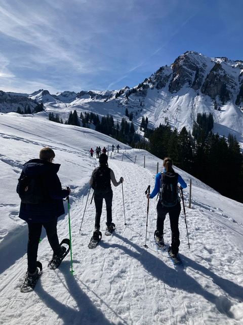 Niki, who organizes and runs the program at our school, planned a team-building hike for chaperones, which was how I ended up at Wirzweli with a pair of snow shoes strapped over my hiking boots.