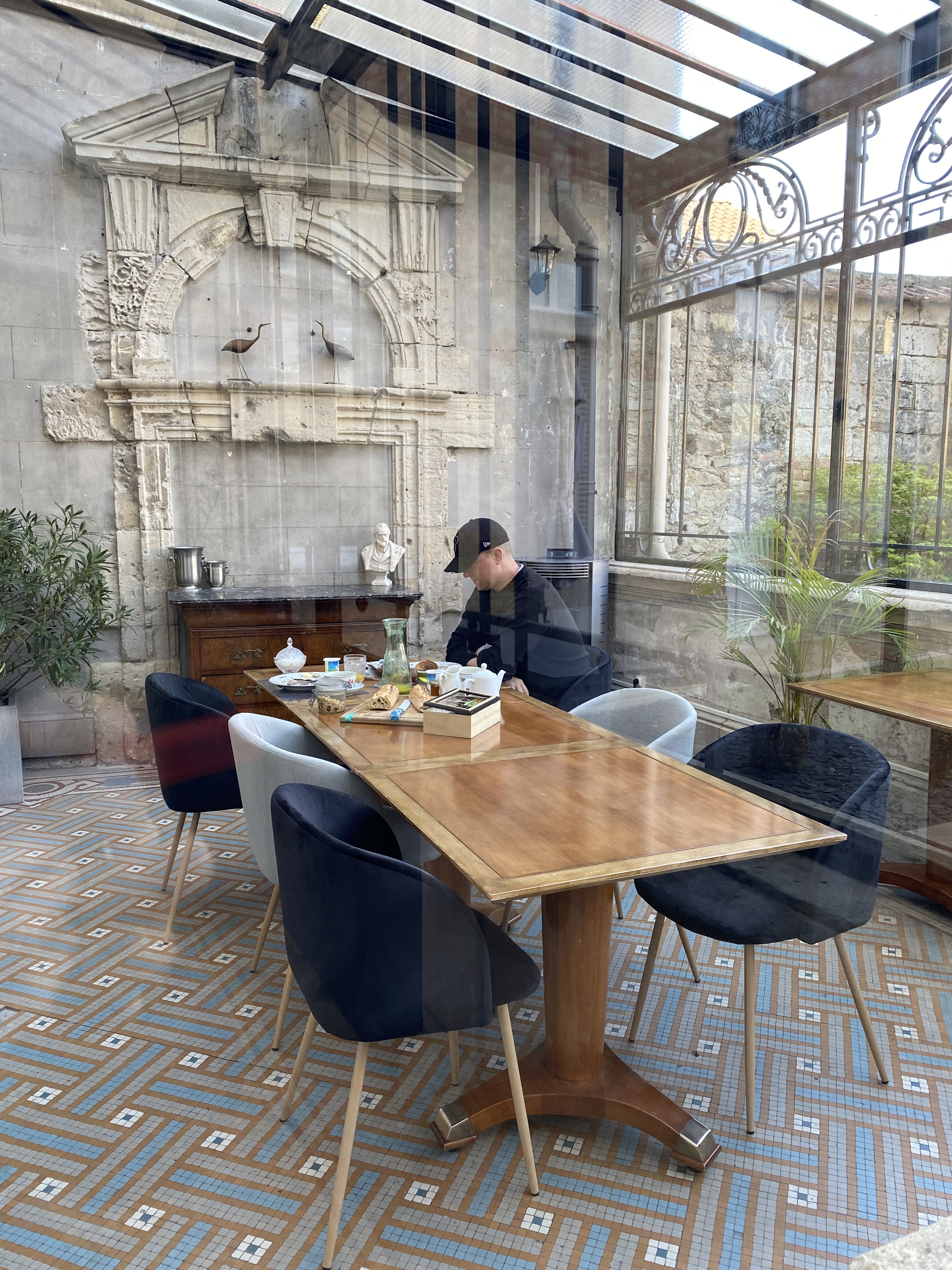 During a toasty breakfast of croissants and crusty bread in the sun room of Le Jardin d’Hiver, I opened Google Maps to see what time Ruinart opened and – it was closed. Of all the Champagne houses in Reims, that was the one I most wanted to visit. A year ago, Mel had visited Ruinart and returned with stories of cool artwork in the cellars and a delicious bottle of Champagne, adorably jacketed in some kind of white foam sleeve secure with a plastic button and a colorful label depicting leafy filigree.