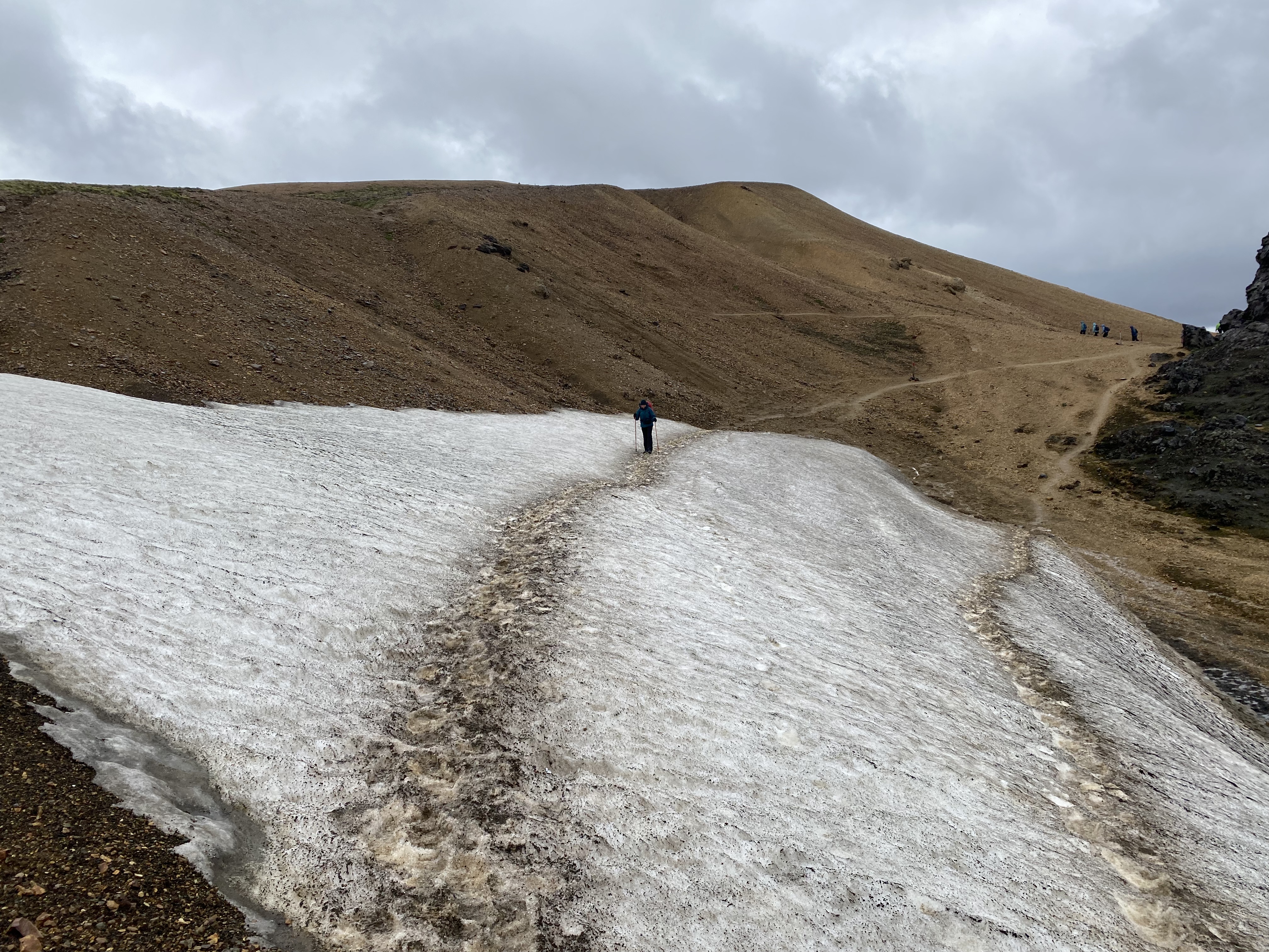 We took the snowfields carefully today, looking to see where the snow looked more packed than thin. I learned from my book that just because there are boot prints across the snow, it doesn’t mean it’s safe to walk there. It might have been sturdy when the prints were made, but might be decaying now.