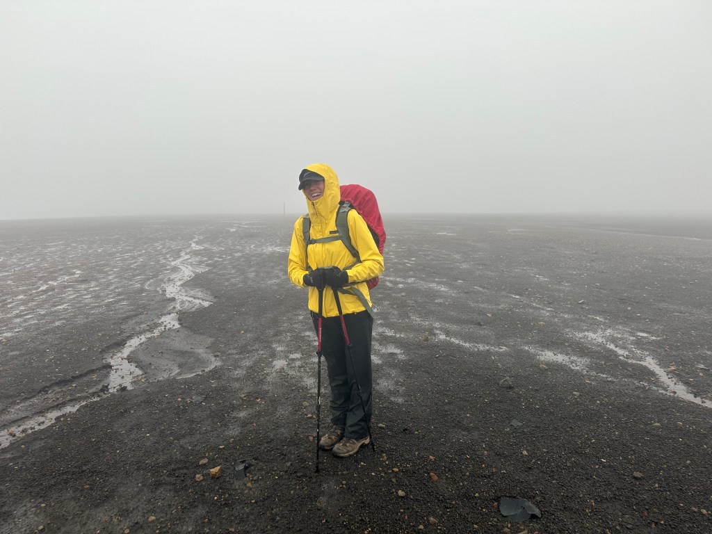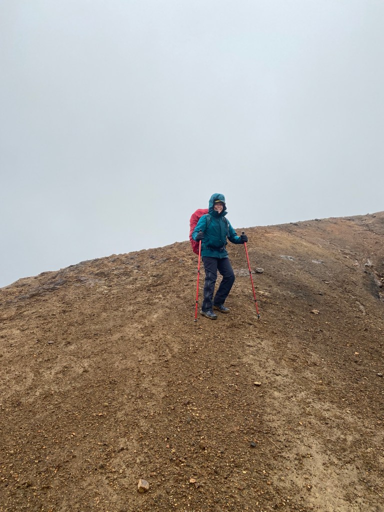 In short: a puny human on a mountain ridge is a dandelion puff to Icelandic wind.