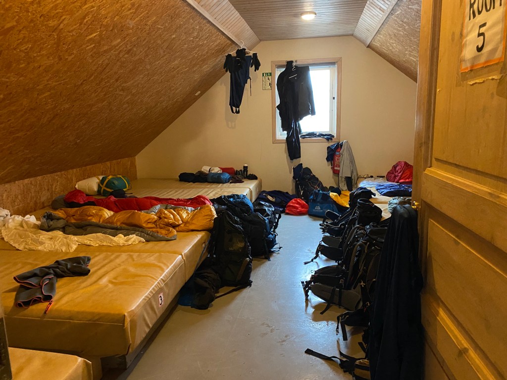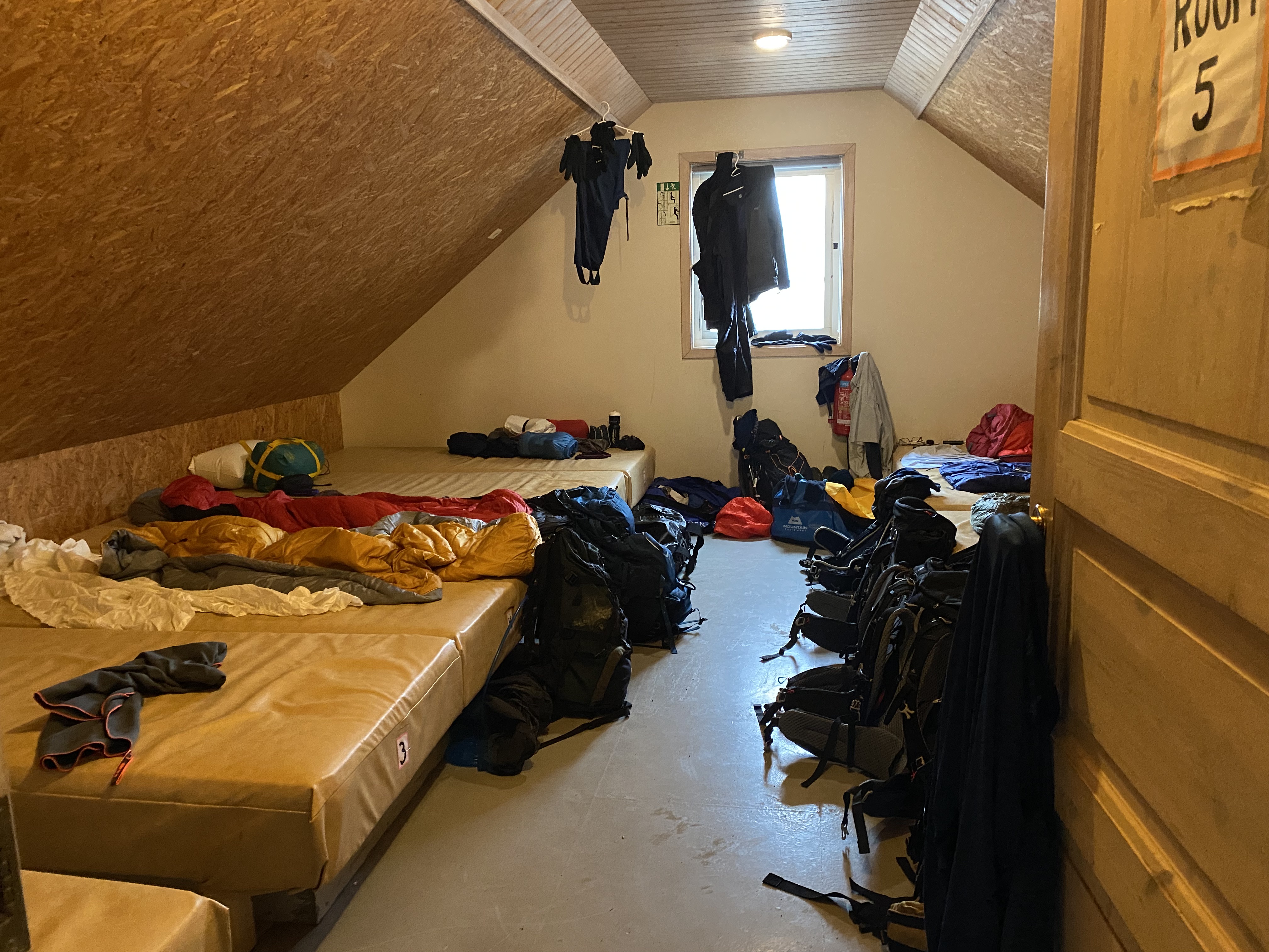 We headed into the hut, placed our boots by a furnace, removed the soles, and headed upstairs to our room.