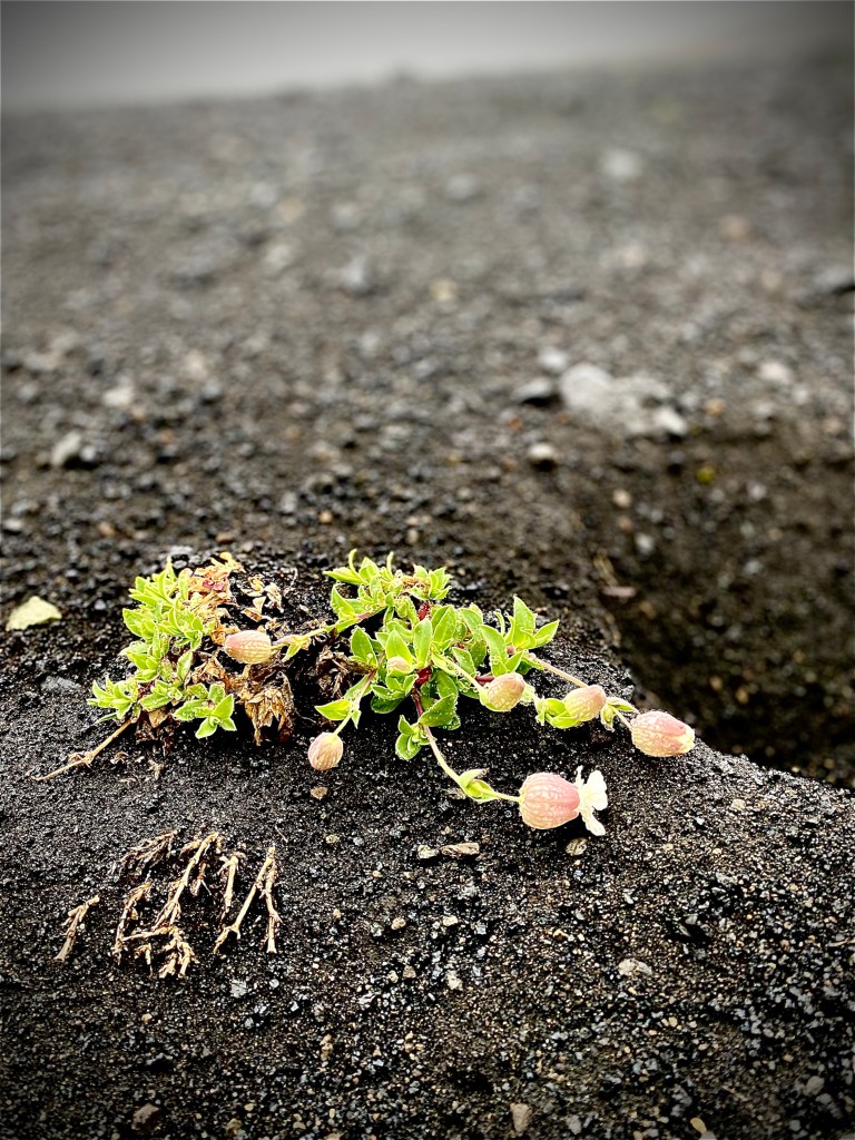 My book had promised that as we descended, the temperature would get warmer and the wind gentler, and both were true. The descent was steep in parts, but gorgeous. The path was rocky and wound its way through green moss, grass, and bright flowers like lupine and sea campion.