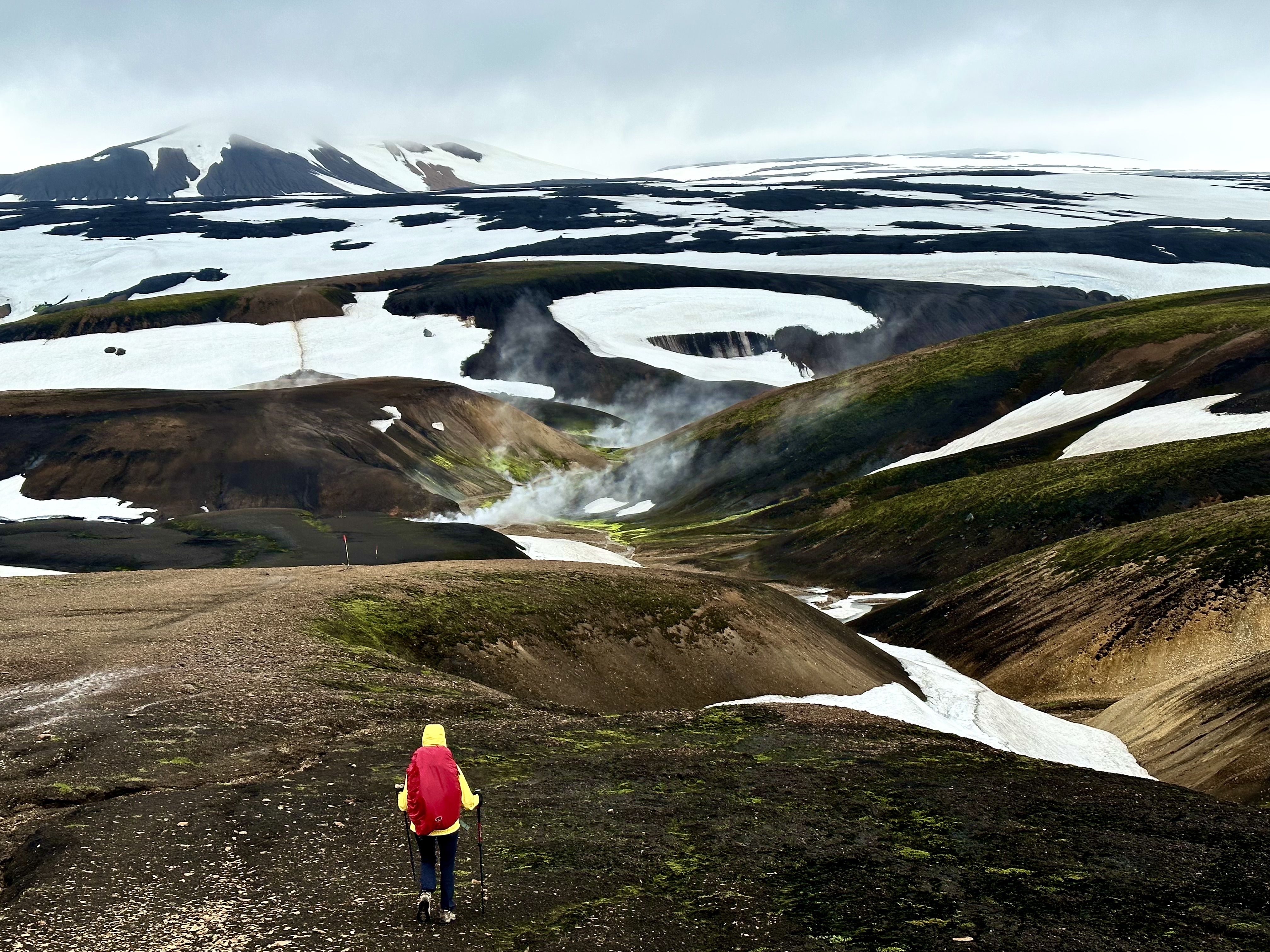 We were also grateful for our hiking poles, especially on downhills, through snow, in the crazy Icelandic wind, and in river crossings.