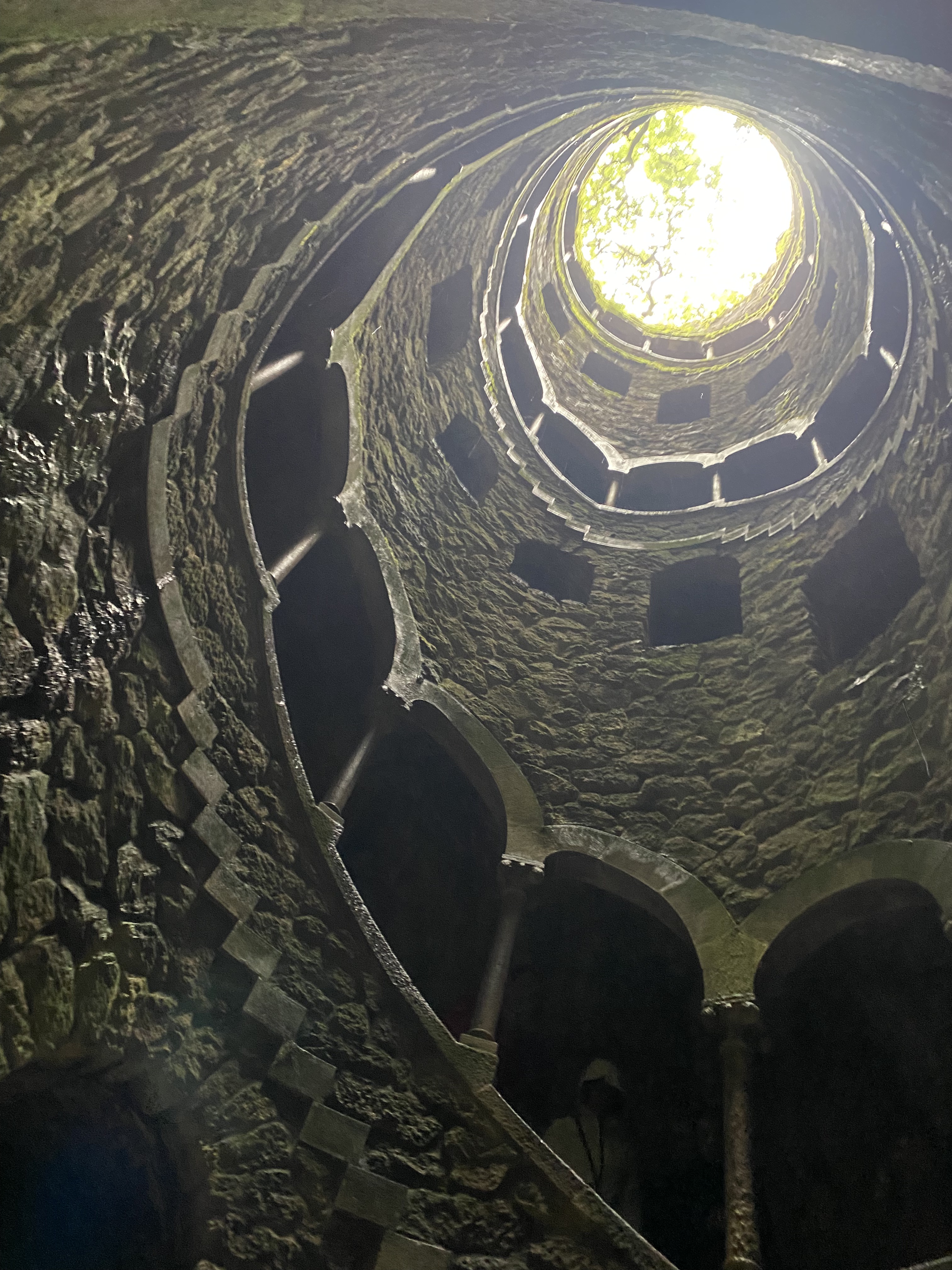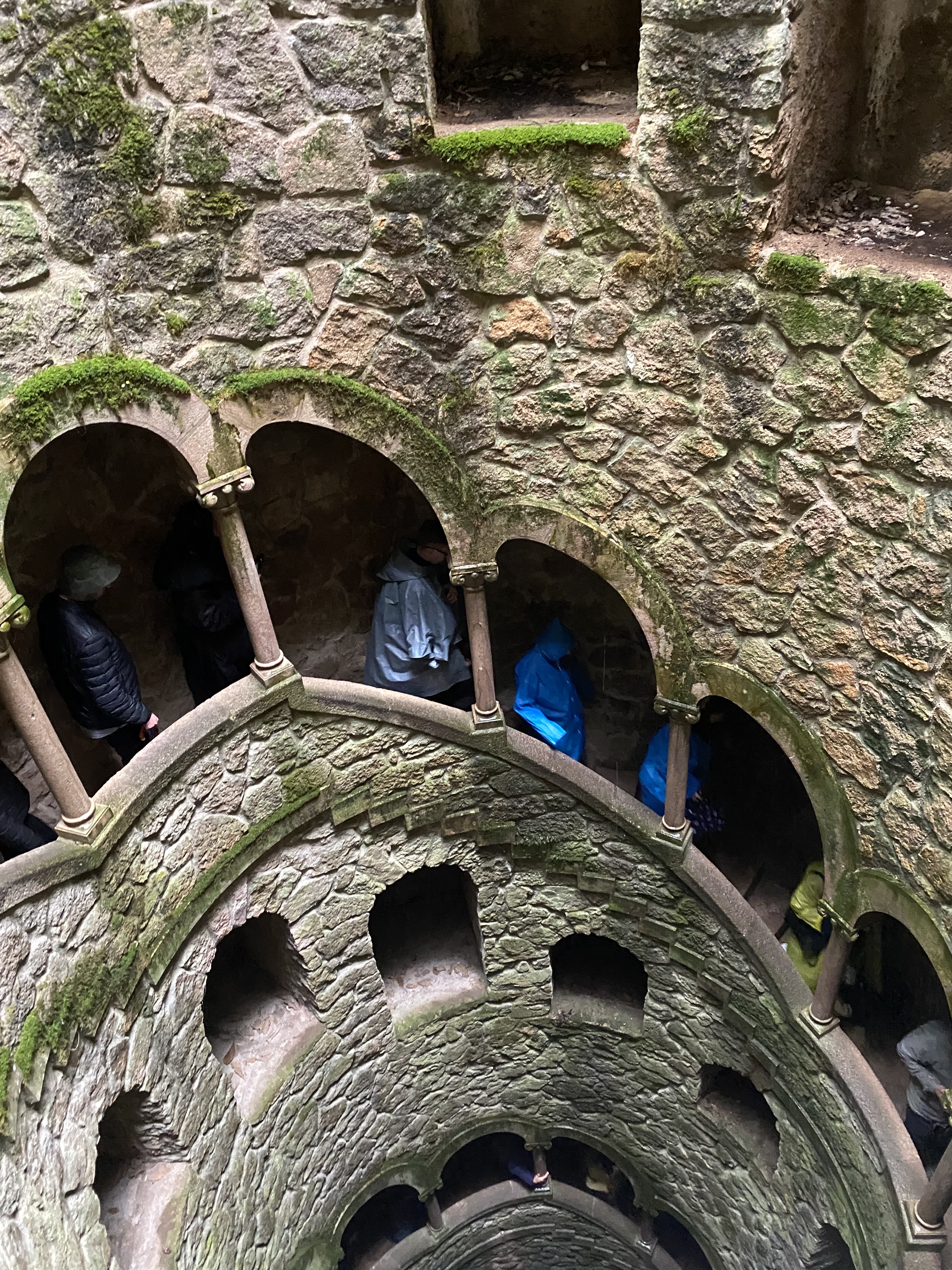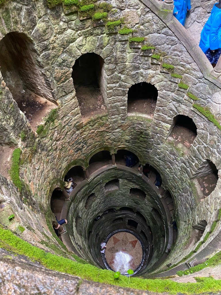 Entrance to the well was efficient. Two park employees stood at the entryway as visitors trickled through the arch. Every couple of minutes, they would call down into the well at people who had stopped a bit too long for a photo to “keep moving!” This comforted me, because while I enjoy exploring, getting stuck in a well because someone is taking a barrage of selfies did not sound fun, and I kept wondering if Portugal was overdue for another insane earthquake. How many years had it been since 1755?