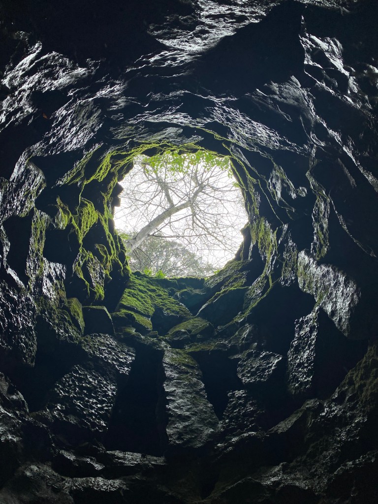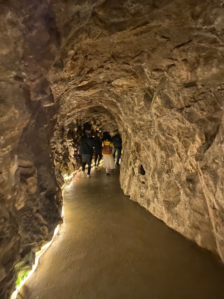 We descended down to the very bottom, where a stone floor depicted the cross symbol of the Knights Templar. From there, we entered a stone grotto lit with twinkling fairy lights, a modern touch the initiated knights missed out on. We followed the grotto to the Unfinished Well. (As we walked toward the Initiation Well earlier, Dan mentioned something about the “unfinished well.” I argued that we were not going there, and it was in the wrong direction, but Dan understood me saying I didn’t believe there was an unfinished well. He went back to the sign to take a photo and send it to our group. When we emerged in the Unfinished Well, he proudly and casually said, “Oh, where’s this? What well are we in now?”)