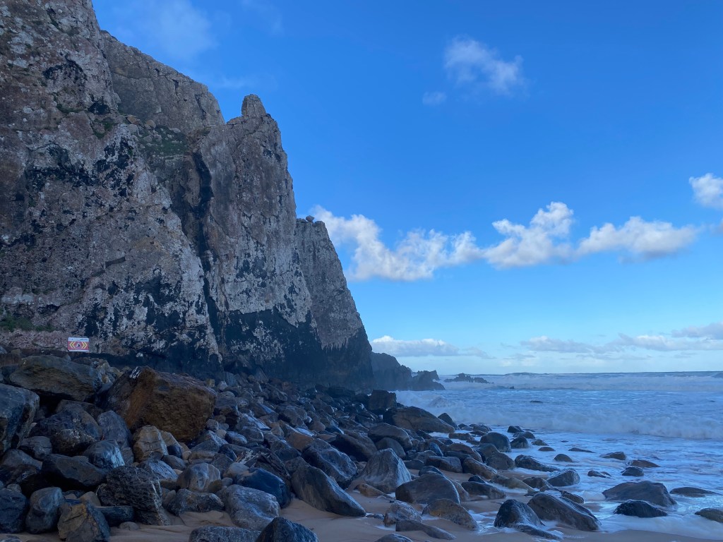 I pulled out my phone and perused my Lonely Planet. It turned out that our hotel was on Praia Grande, a small beach that was sandwiched between our hotel and massive rocky cliffs we hadn’t seen through the storm when we arrived the afternoon before. On those cliffs were dinosaur fossils. I was in.