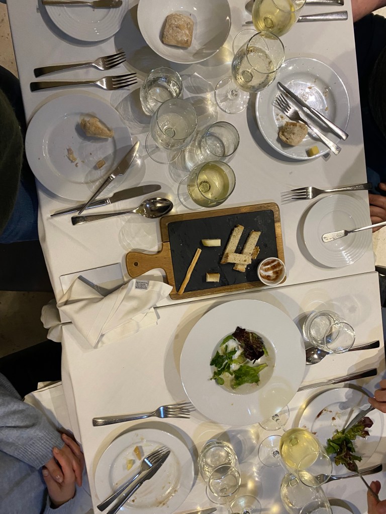 What a 180 dry clothes, good company, and a plan can be. We played pool for over an hour, Rebecca and I sharing a small bottle of white wine, Dan and J drinking beer. We made it down for dinner at 7:45, where we ordered a cheese board and two bottles of wine from the manager who looked like a mix between McDreamy and Willem Dafoe. His recommendations were on point and offered with a good sense of humor.