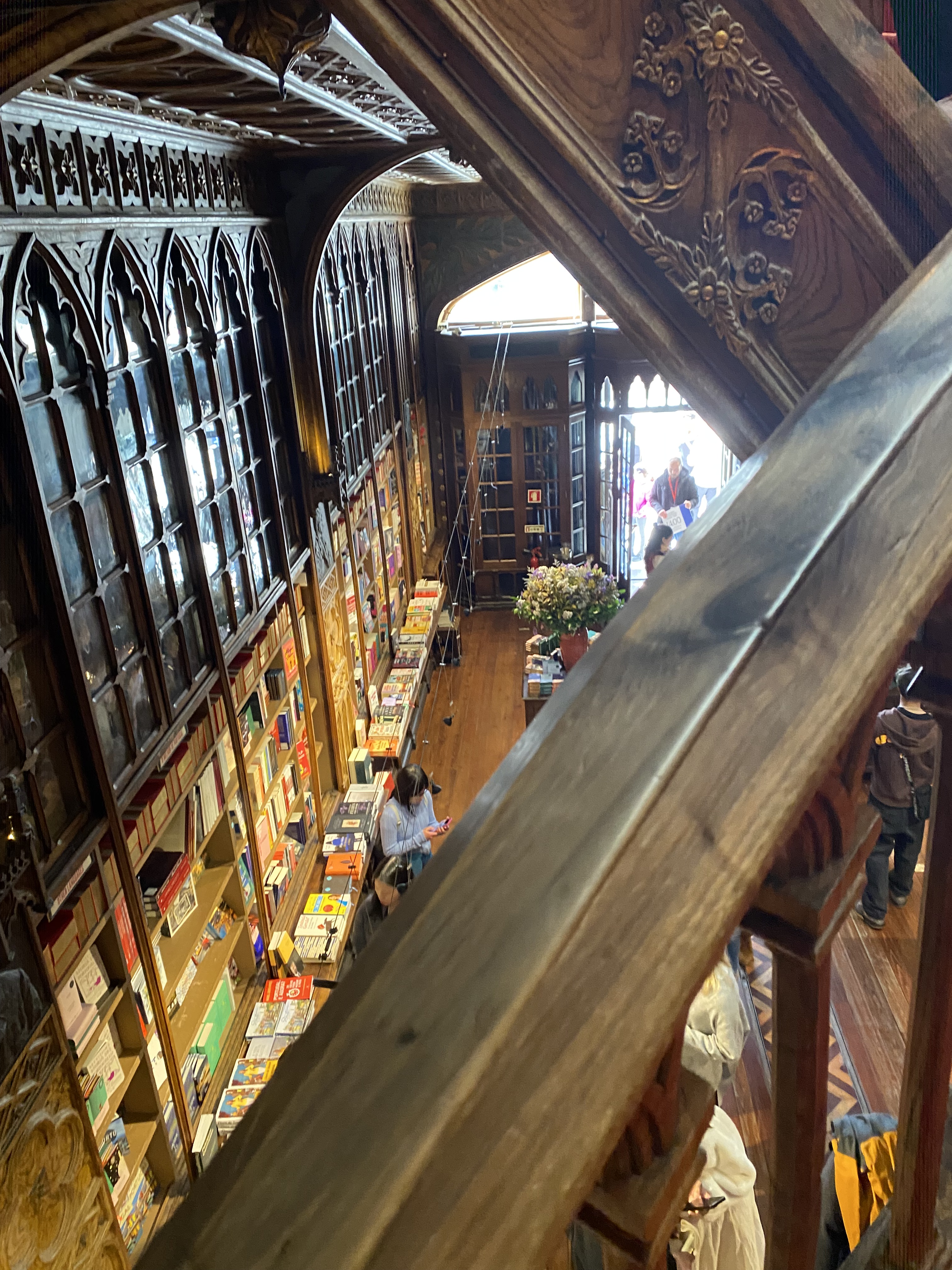 According to my Lonely Planet, the famous red staircase in the bookstore was “supposedly the inspiration for the one in the Harry Potter books, which JK Rowling partly wrote in Porto while working here as an English teacher from 1991 to 1993.” Like Jesus, I did not know that JK Rowling had been in Portugal, much less an English teacher. (Obviously we learned Jesus had not been in Portugal.)